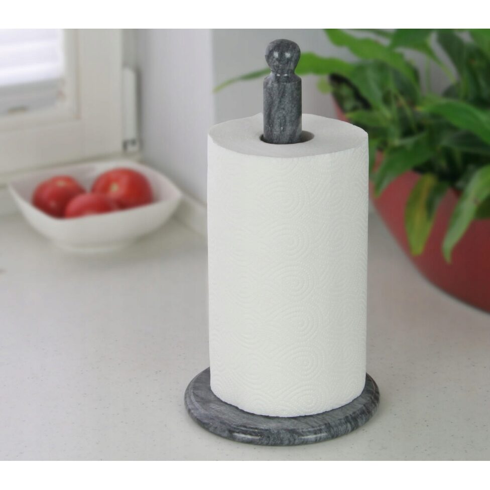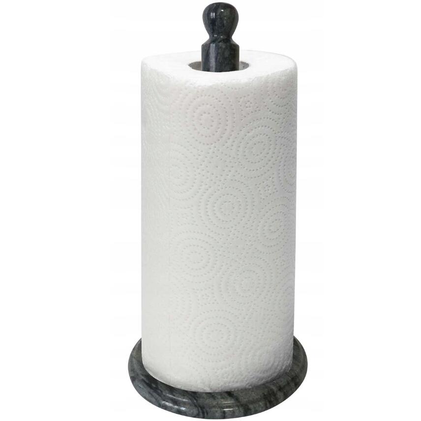 Suport pentru prosoape de hârtie din marmură gri închis. Baza din cauciuc asigură stabilitate. Cântărind peste 2 kg, oferă o bază stabilă pentru prosop. Vă permite să-l desfaceți fără a fi nevoie să țineți suportul cu cealaltă mână.