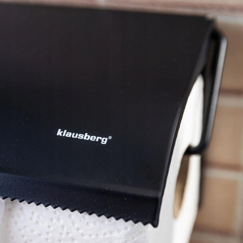 Suport rola prosoape de bucatarie, servetele, inox, 12 x 12.3 x 1.6 cm, negru, Klausberg