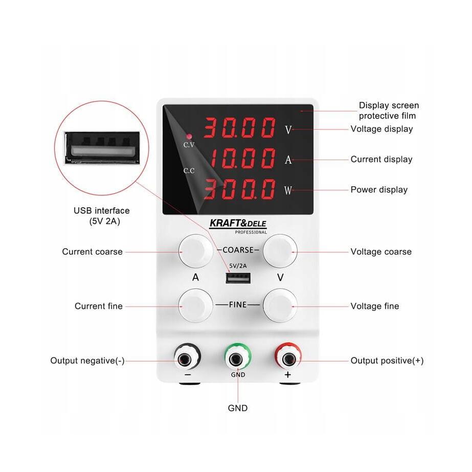 Sursa de alimentare de laborator este un dispozitiv avansat care combină designul modern cu funcționalitatea, ideal pentru aplicații de precizie în laboratoare, ateliere și lucrări de service. Tensiunea și curentul de ieșire reglabile permit adaptarea la o varietate de sarcini, ceea ce o face un instrument versatil pentru profesioniști.