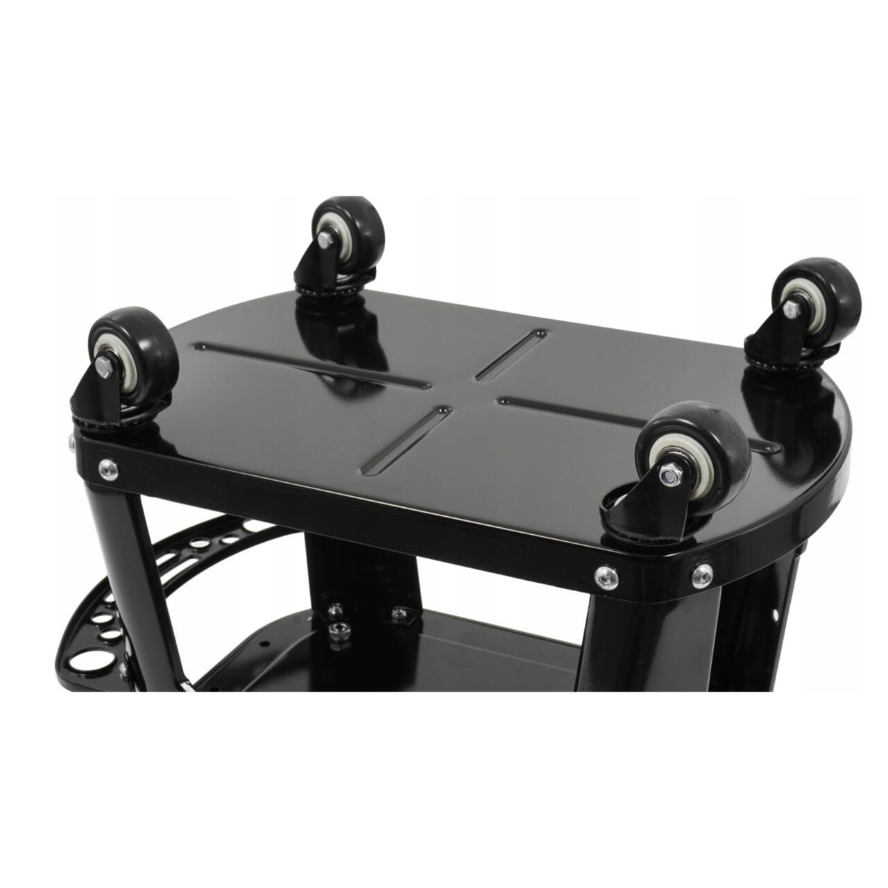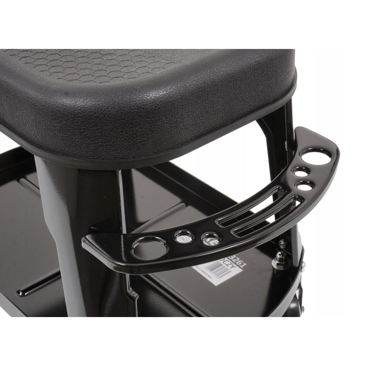 Scaunul de atelier este conceput pentru a fi utilizat în ateliere profesionale, servicii auto, ateliere de reparații și, de asemenea, va funcționa excelent într-un garaj de casă. O soluție practică este dotarea acestuia cu un mâner suplimentar, unde mecanicul să poată plasa uneltele folosite în timpul lucrului.