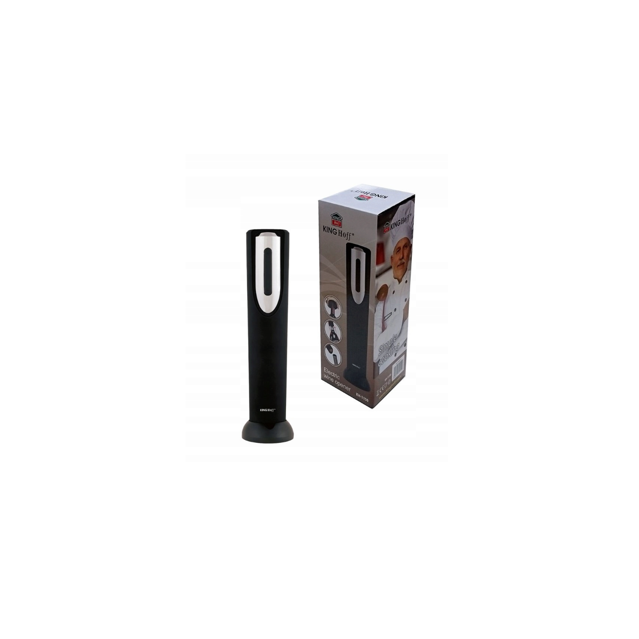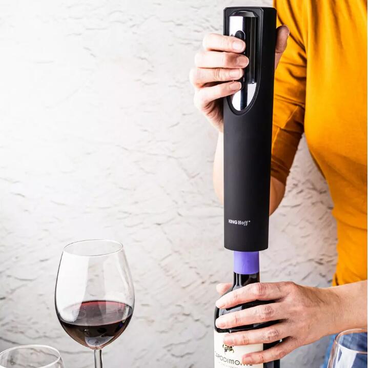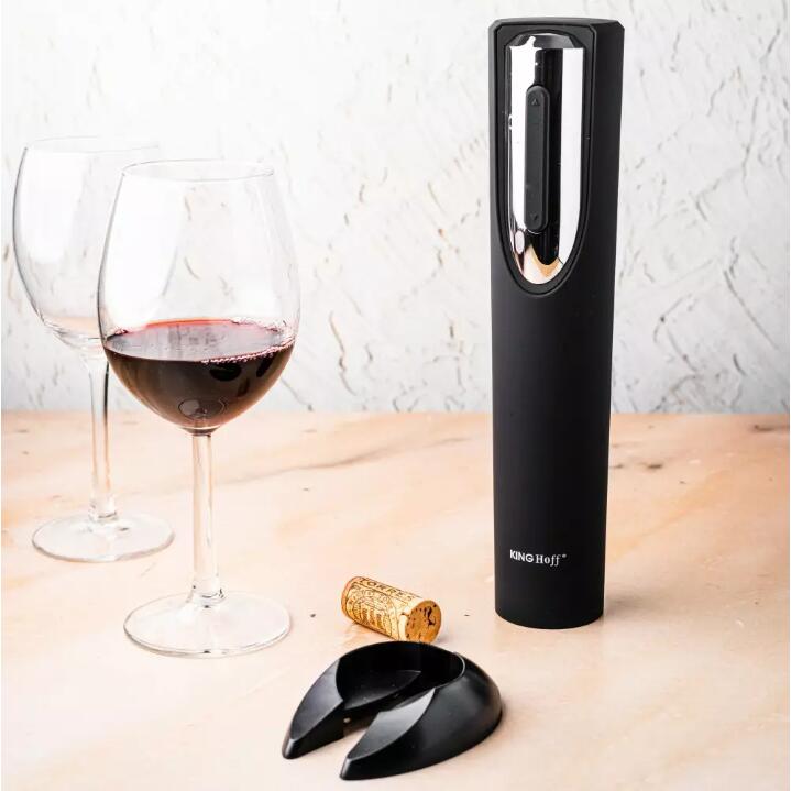 Tibuson electric pentru sticle, negru, cu baterii, Kinghoff
