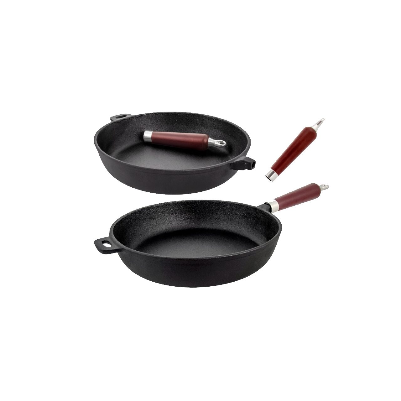 Mânerul din lemn deșurubat vă permite să utilizați tava în cuptor și o face ușor de depozitat.