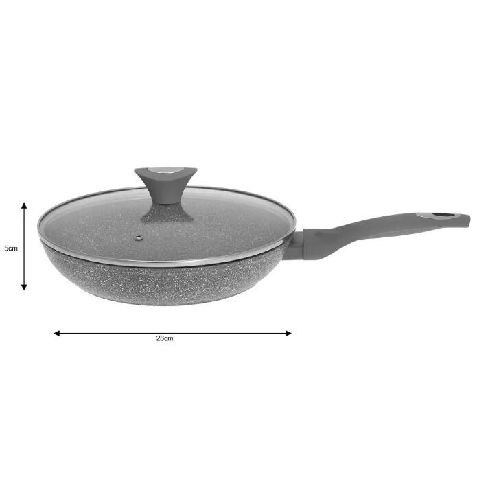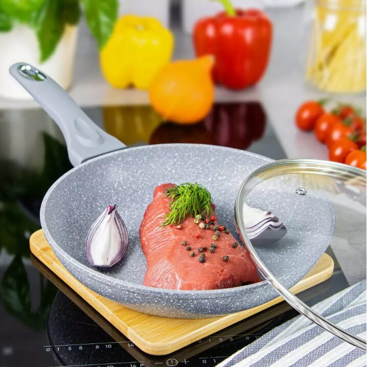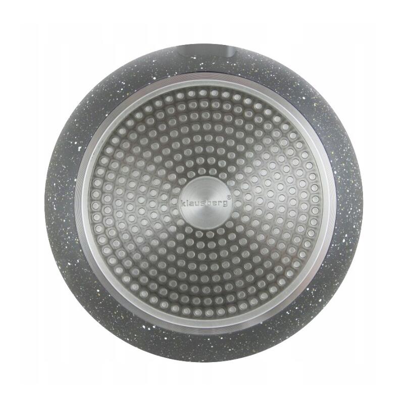 Acoperirea antiaderență de granit este îmbogățită cu granite fine, datorită cărora obține o duritate mai mare. Este mai dura decât teflonul, dar în același timp își păstrează avantajele: nu arde, distribuie bine căldura. Combină avantajele vaselor din fontă și teflon. Are toate avantajele teflonului, dar este mai rezistent la deteriorare, depășind chiar și acoperirile ceramice. Acest tip de oale și tigăi vă permite și să prăjiți cu o cantitate minimă de grăsimi, deoarece vasele de gătit se încălzesc ca o piatră și degajă căldură pe toată suprafața sa.