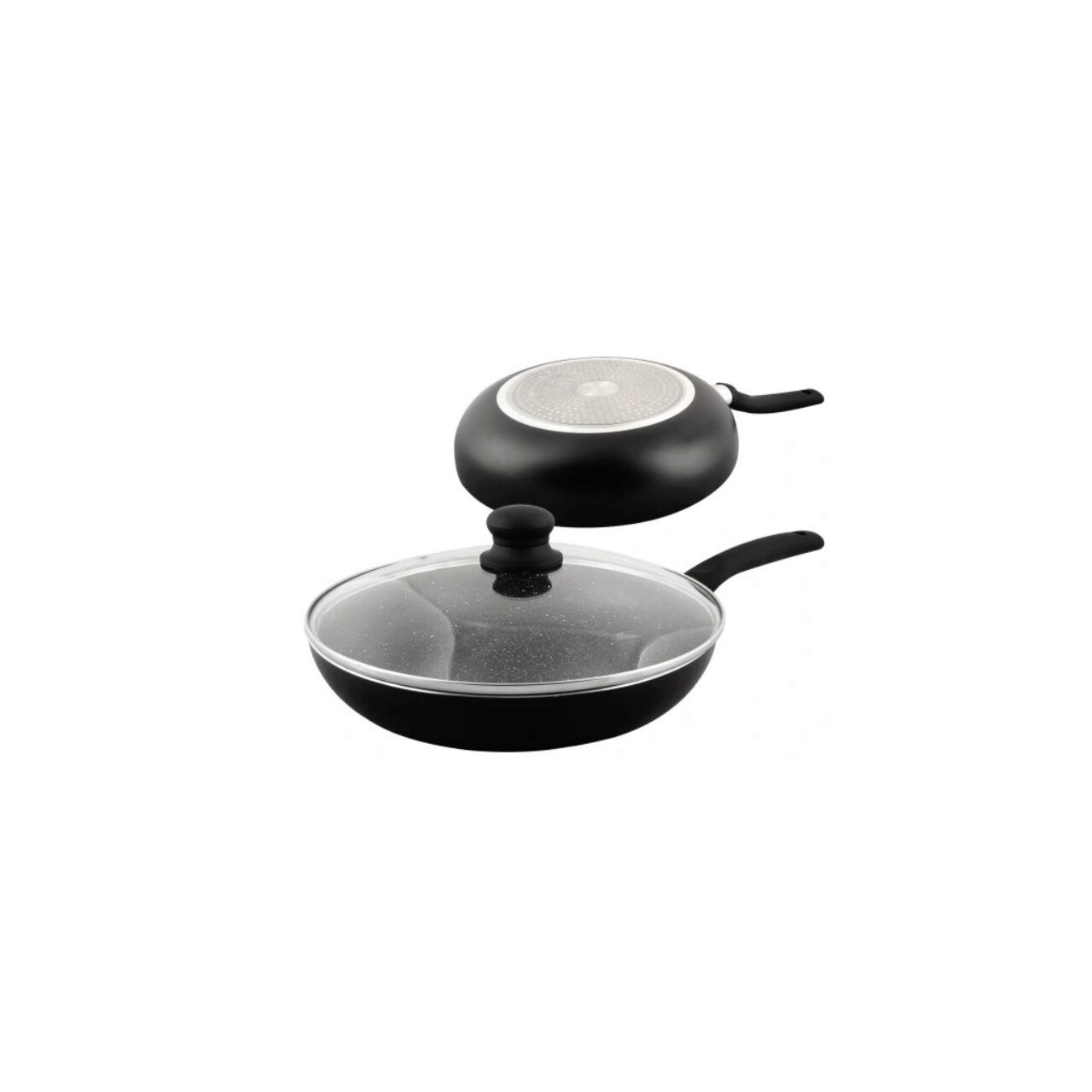 Tigaie din aluminiu cu capac, marmorata, 20 cm, negru, KingHoff