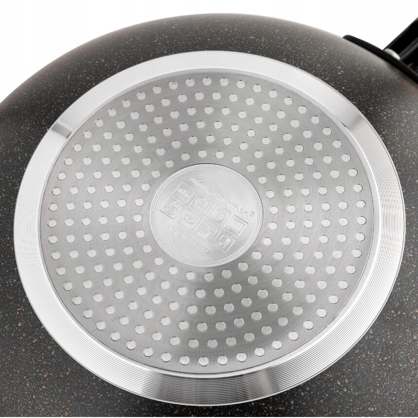 este acoperit cu un înveliș de tip piatră care împiedică lipirea alimentelor de tigaie