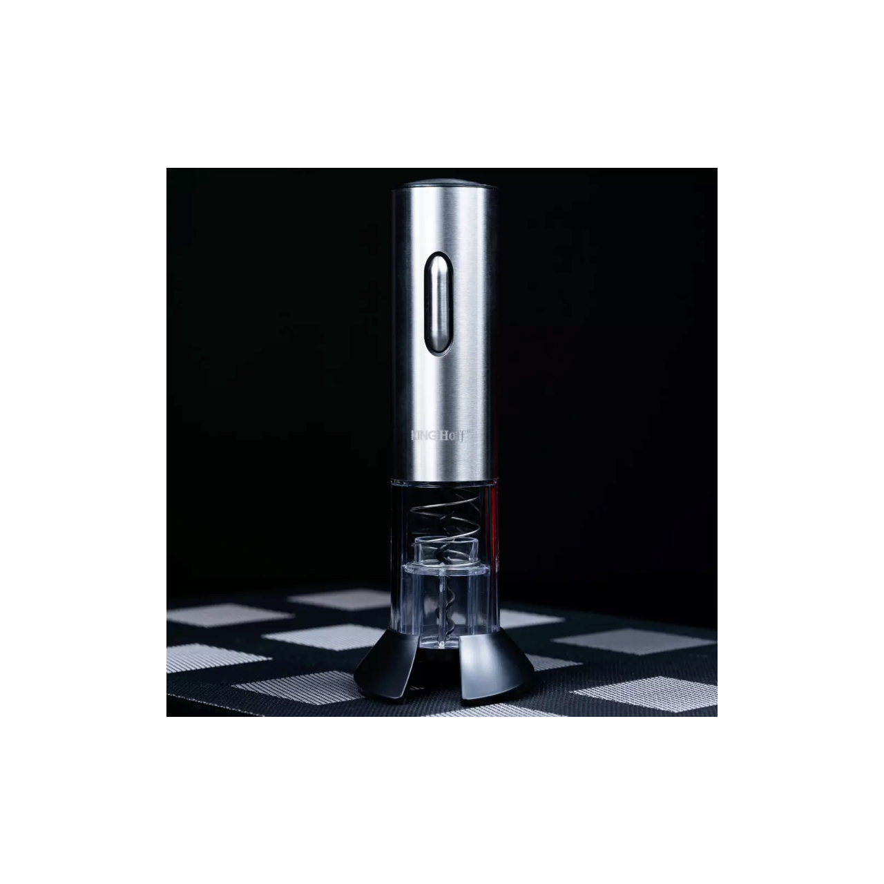Un tirbușon electric pentru vin cu ajutorul căruia poți deschide cu ușurință orice sticlă cu plută. Alimentat cu baterie (încărcare USB) și fără fir, ceea ce vă permite să îl utilizați liber, fără a fi nevoie să îl conectați la o sursă de alimentare constantă. Setul include și un tăietor de folie care servește și ca suport pentru blatul mesei.