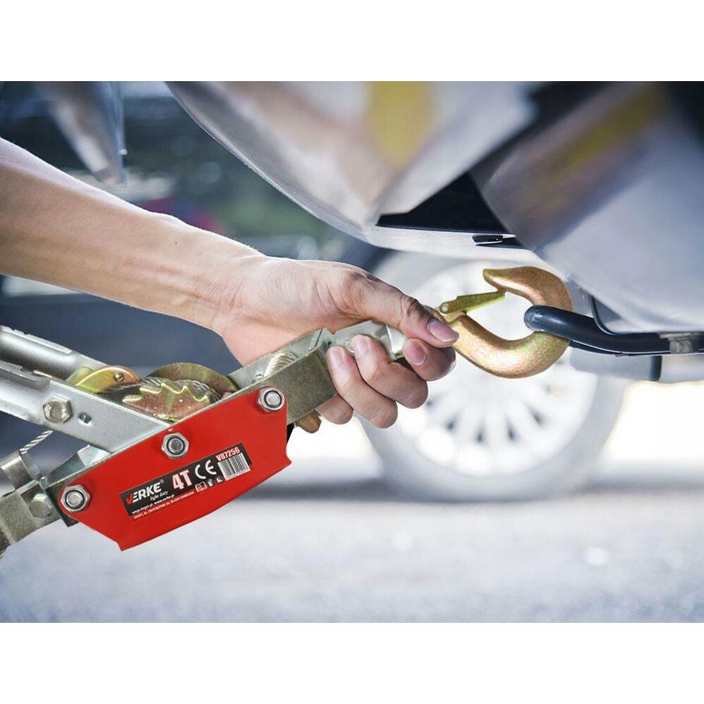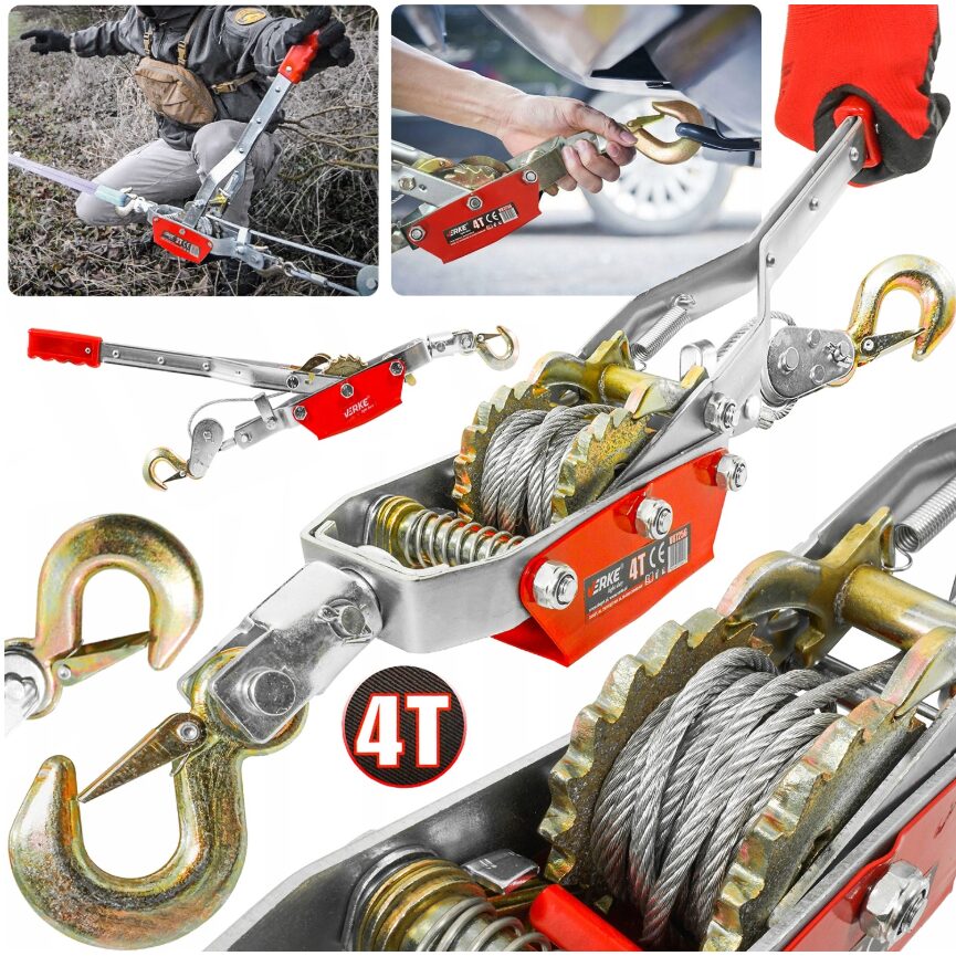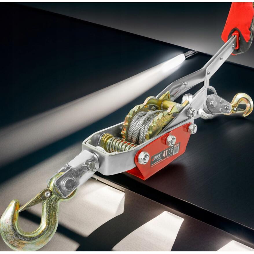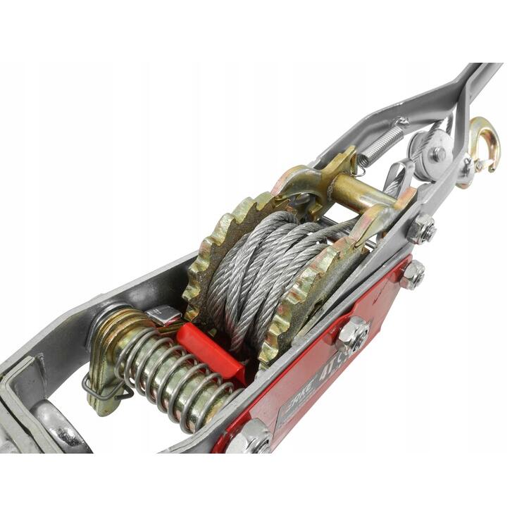 Este făcut dintr-o frânghie de oțel și o pârghie care antrenează un tambur cu mecanism cu clichet.