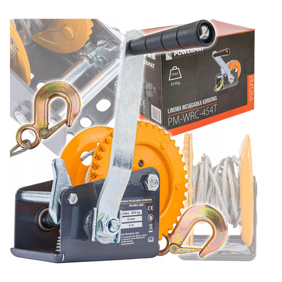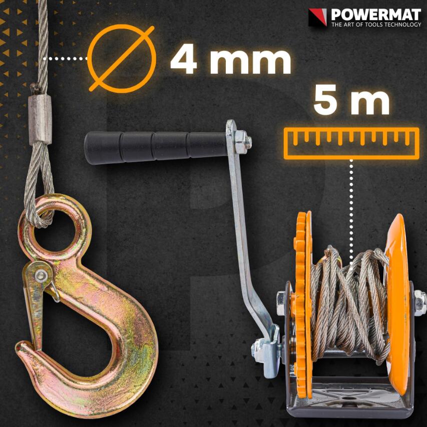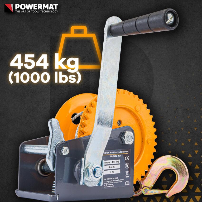 Troliu manual 454 Kg, cu cablu 5m, Powermat