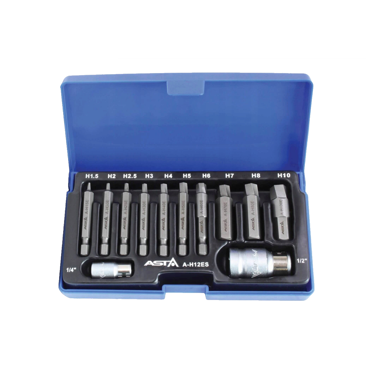 Trusa biti pentru suruburi deteriorate, imbusuri canelate, torx, 1/4" 1/2" H1.5-H10, 12 piese, Satra