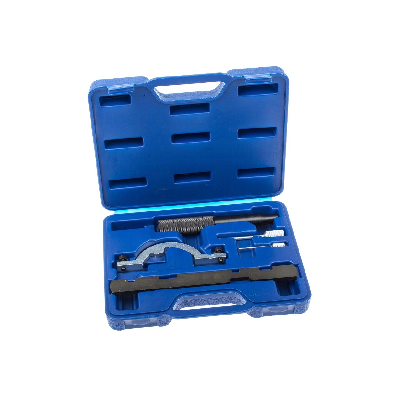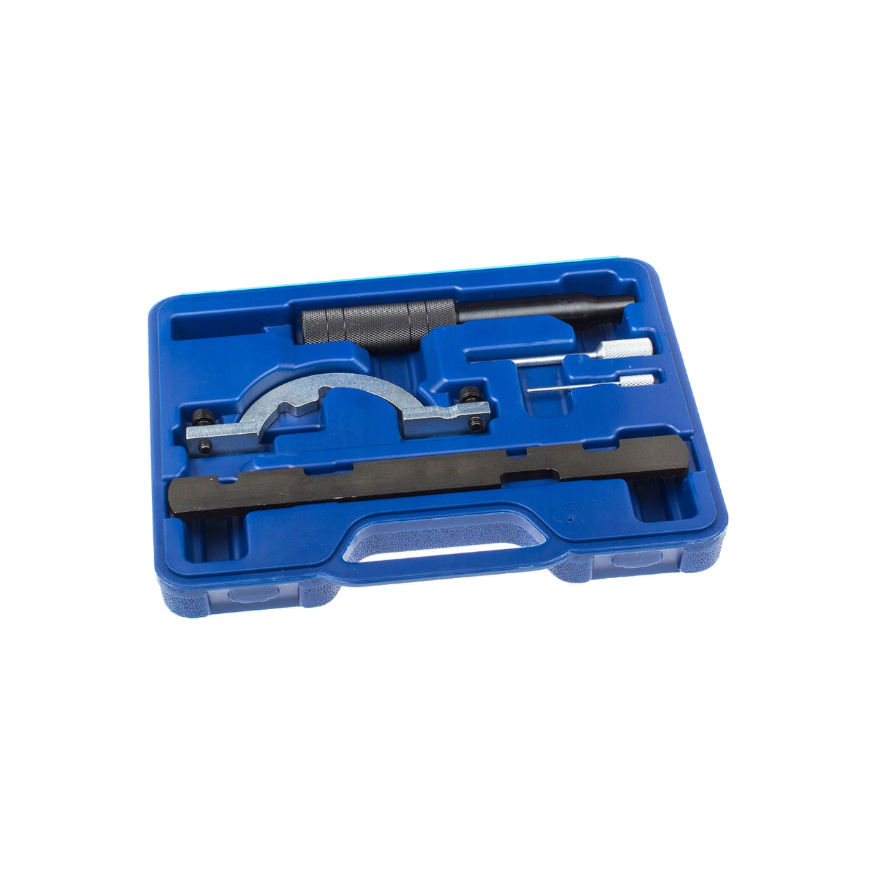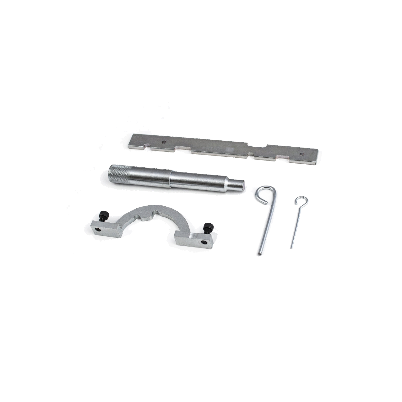 Un instrument de service și sincronizare pentru motoarele de transmisie cu lanț, care include un varf de reglare a arborelui cotit TDC și o poziție a senzorului de orientare și are un întinzător de lanț dublu fără a deteriora varfurile.