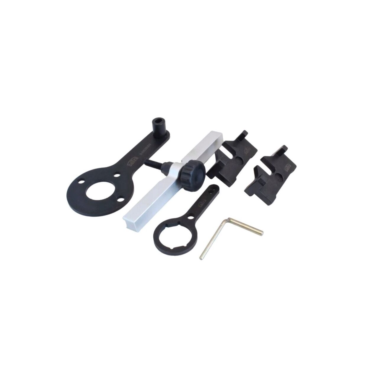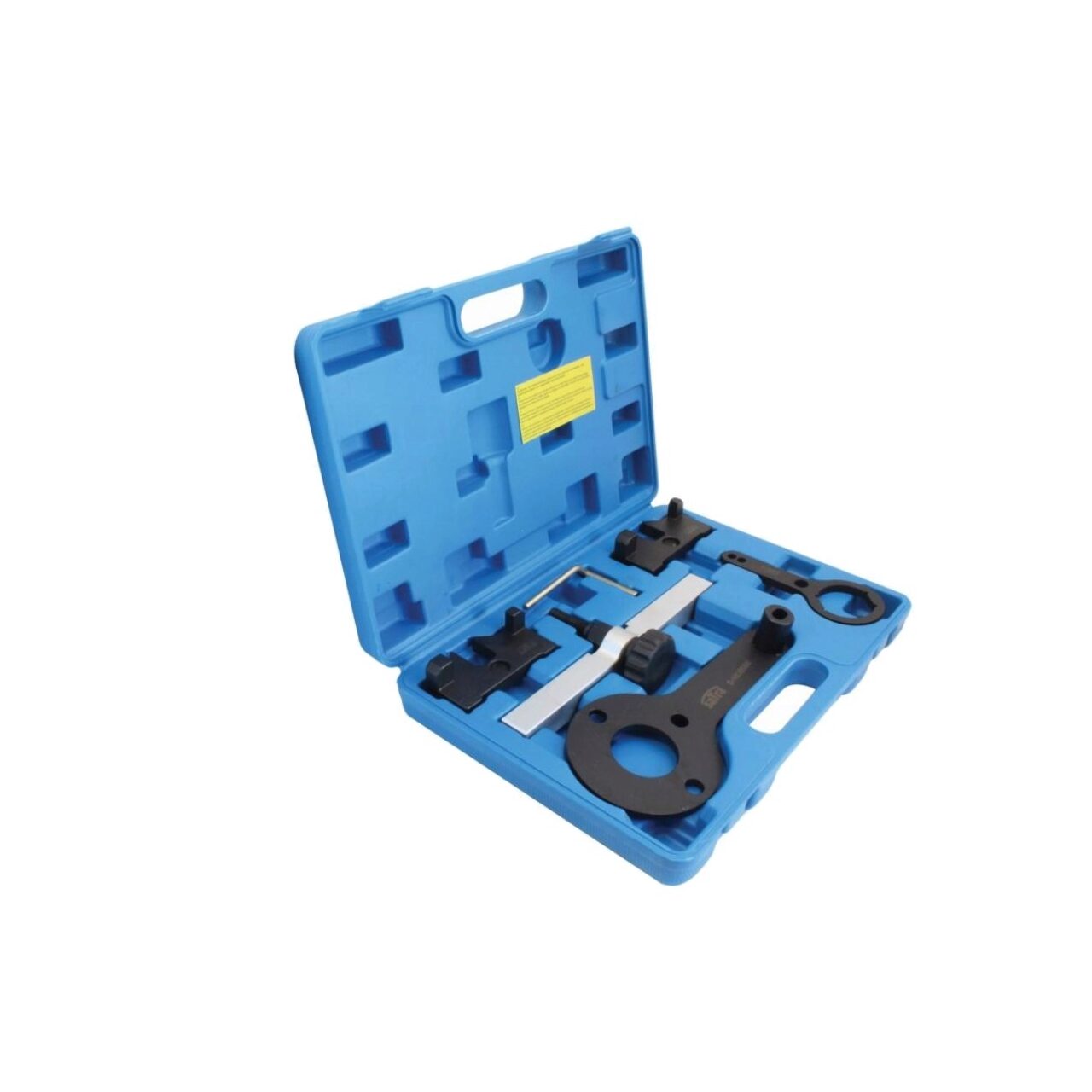 Instrument necesar, util la inlocuirea lantului de distributie, garnitura capului si repararea cilindrilor. De asemenea, este posibil să setați arborele în punctul mort superior și să reglați sistemul VANOS. OEM: Blocare arbore cotit: OEM 118570/119190. Instrument pentru setarea poziției pistonului: OEM 118090. Blocare arbore cu came: OEM 119890. Șurub moletat: OEM 119891. Cheie: OEM 119892. Instrument pentru reglarea supapelor de admisie și evacuare: OEM 119893. Distanțiere: OEM 119894