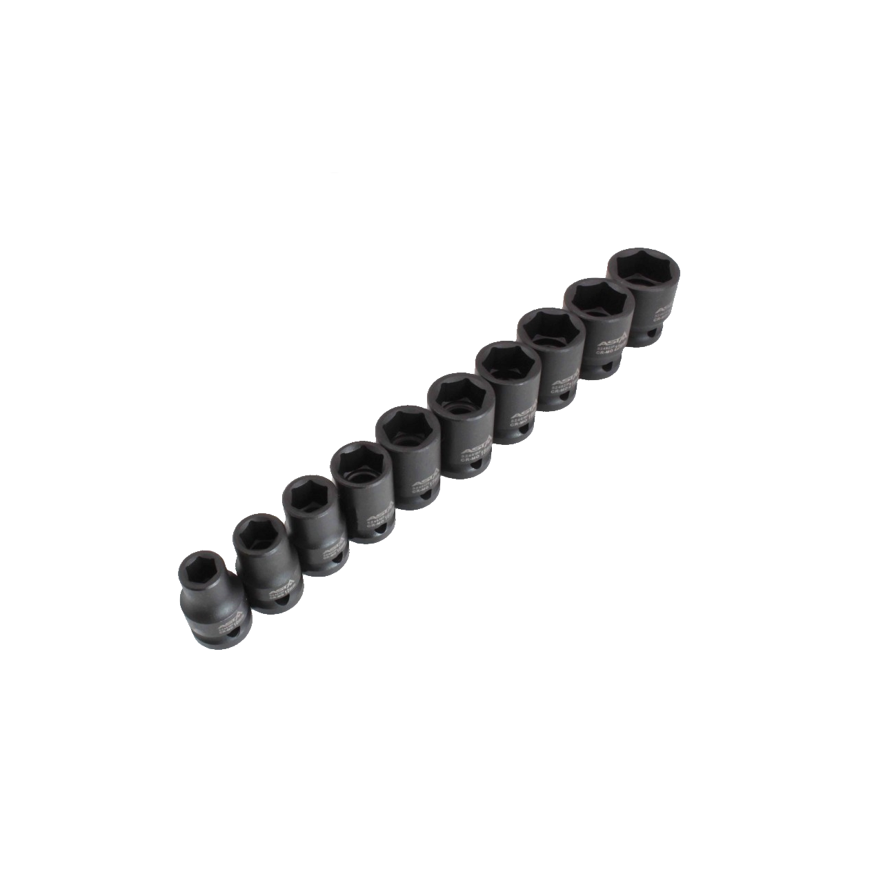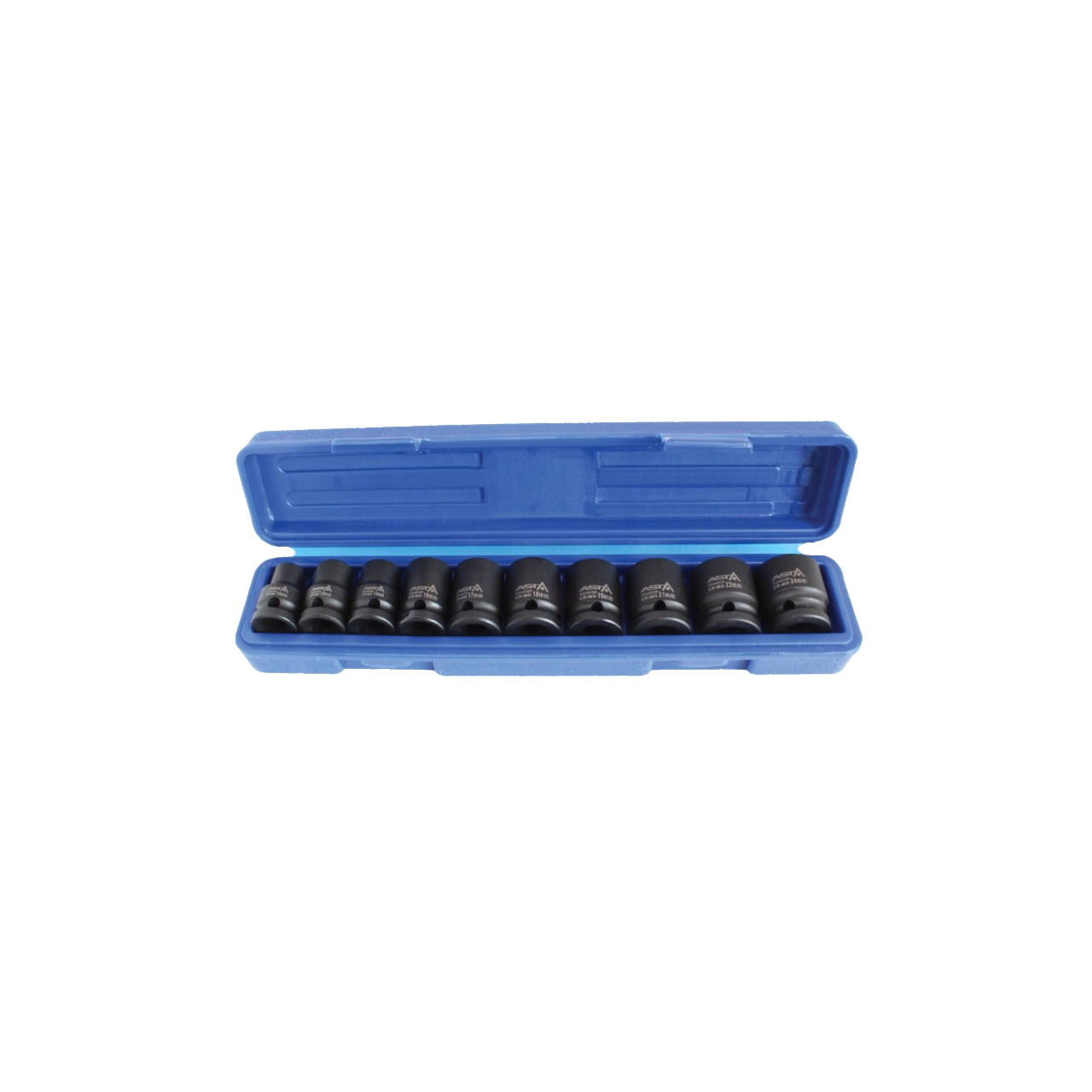 Setul include 10 bucăți de chei de impact de 1/2" și o carcasă din plastic.