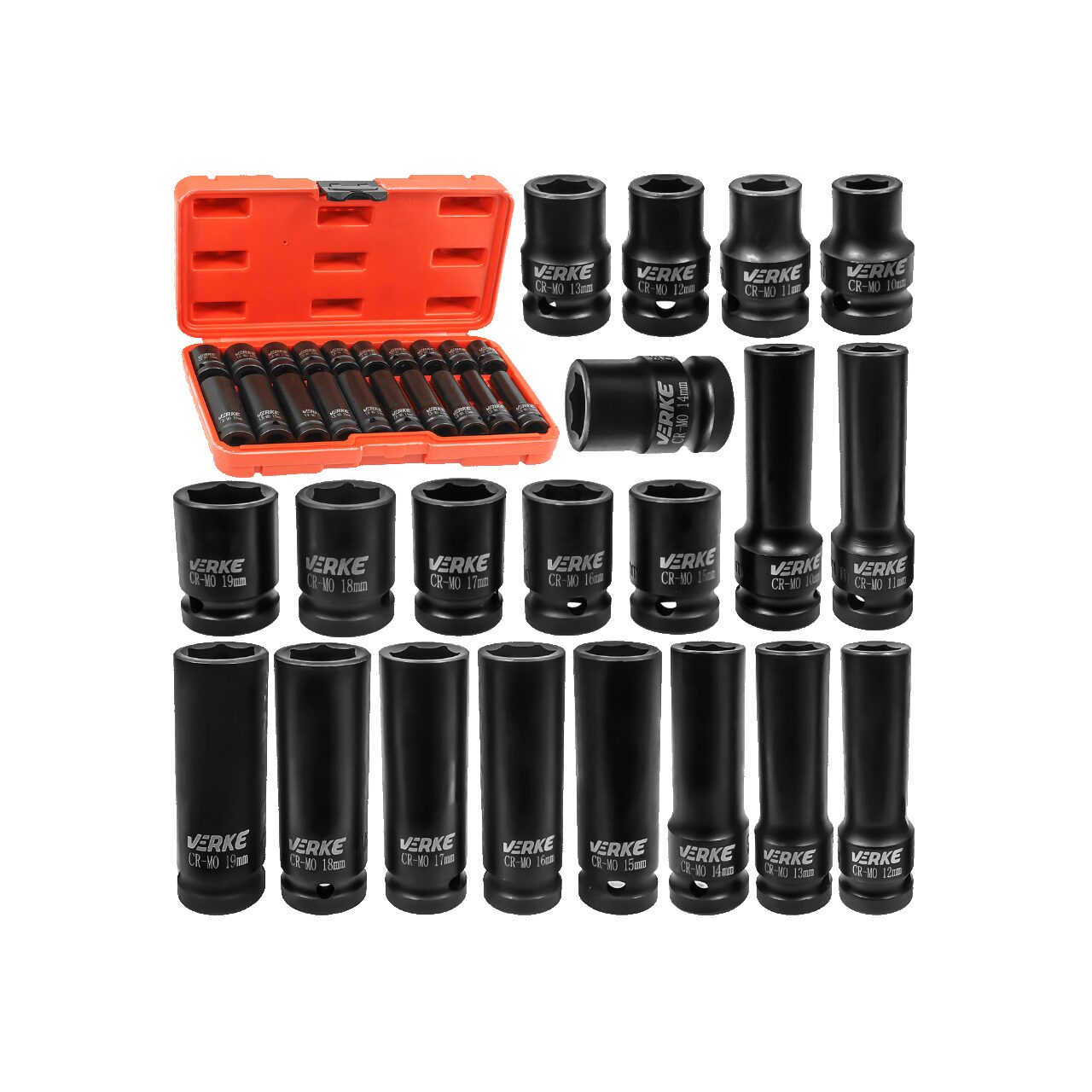 Include chei de impact hexagonale lungi și scurte de dimensiuni populare de la 10 la 19 mm.