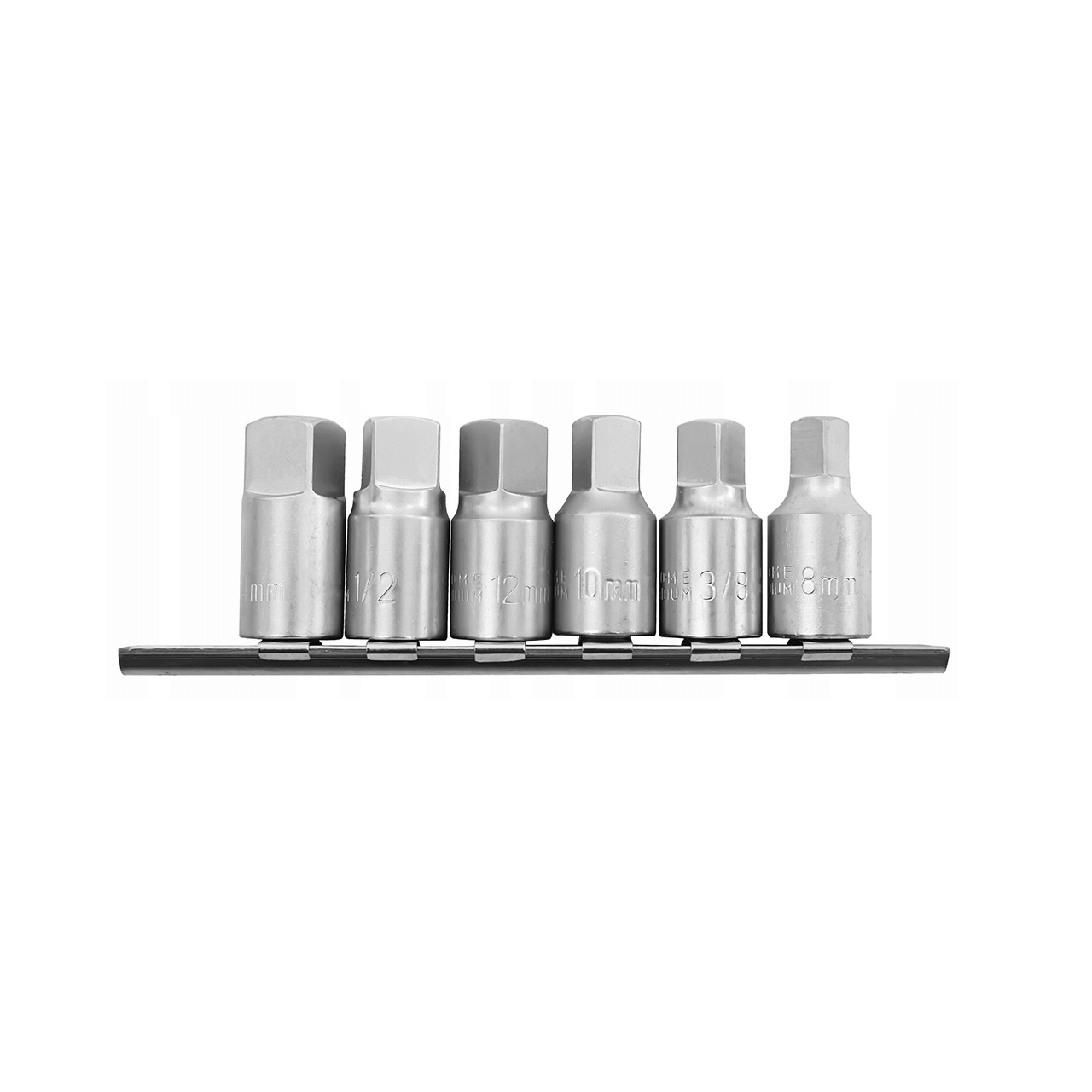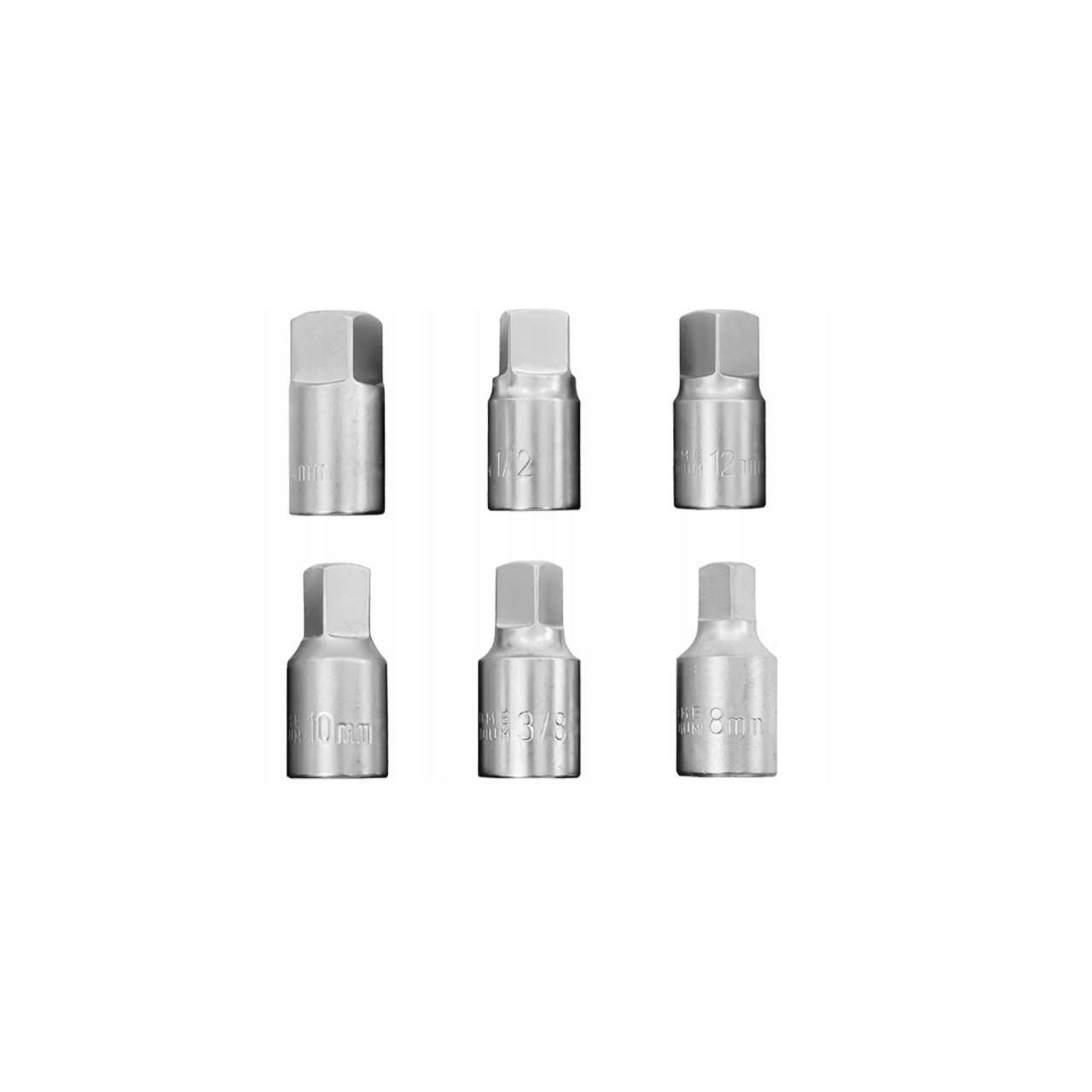 Un set de 6 chei pentru deșurubarea și strângerea dopurilor de scurgere a uleiului într-o tavă de ulei.