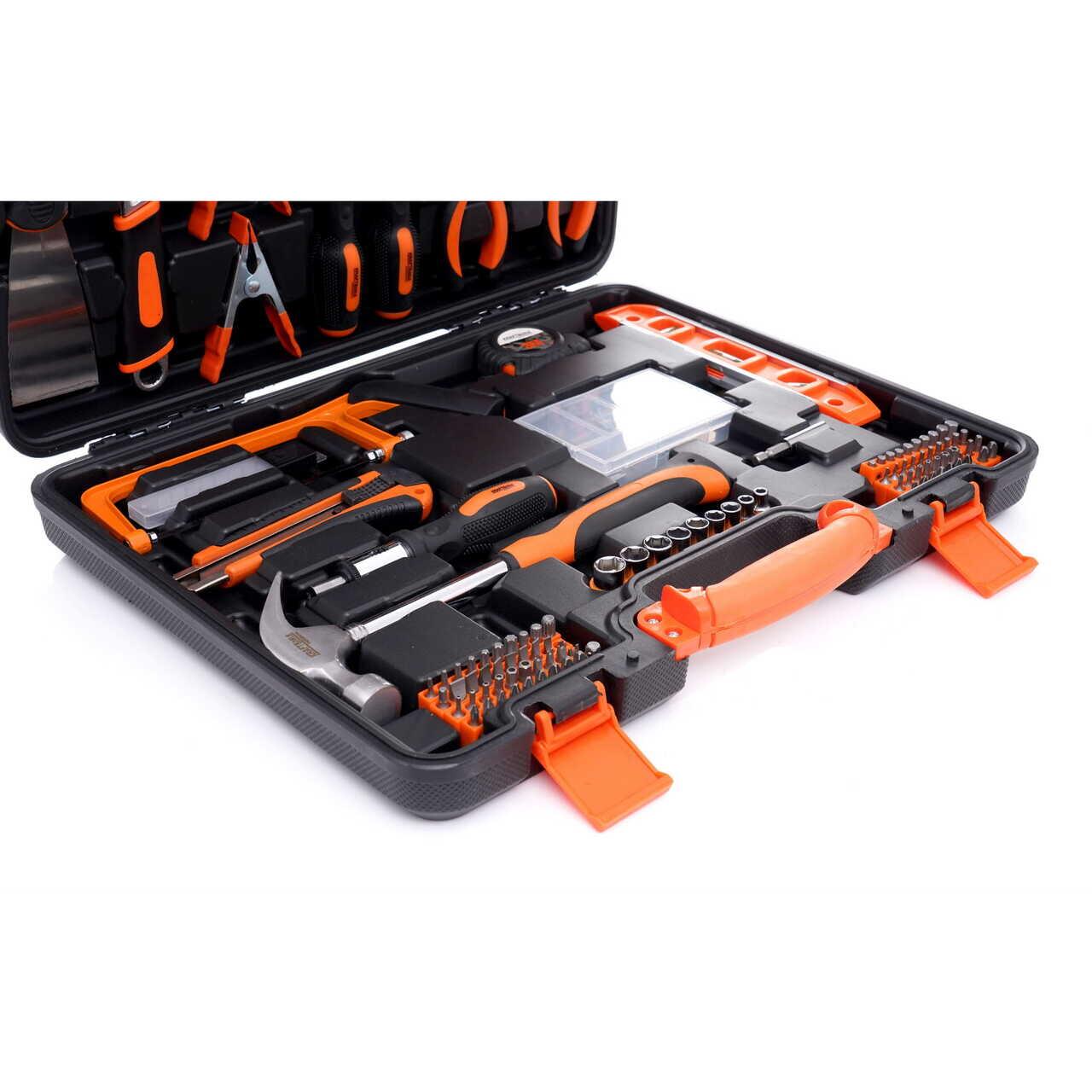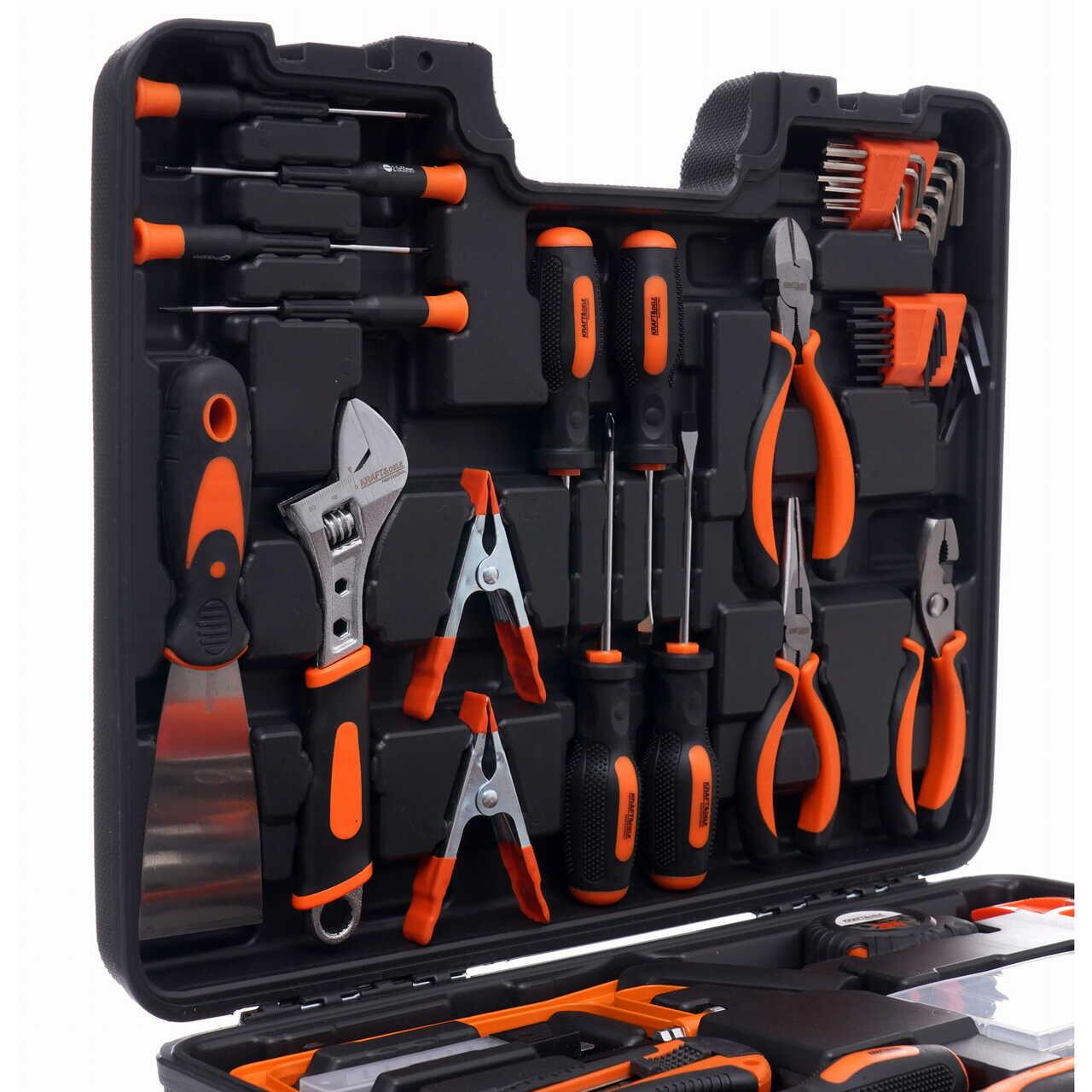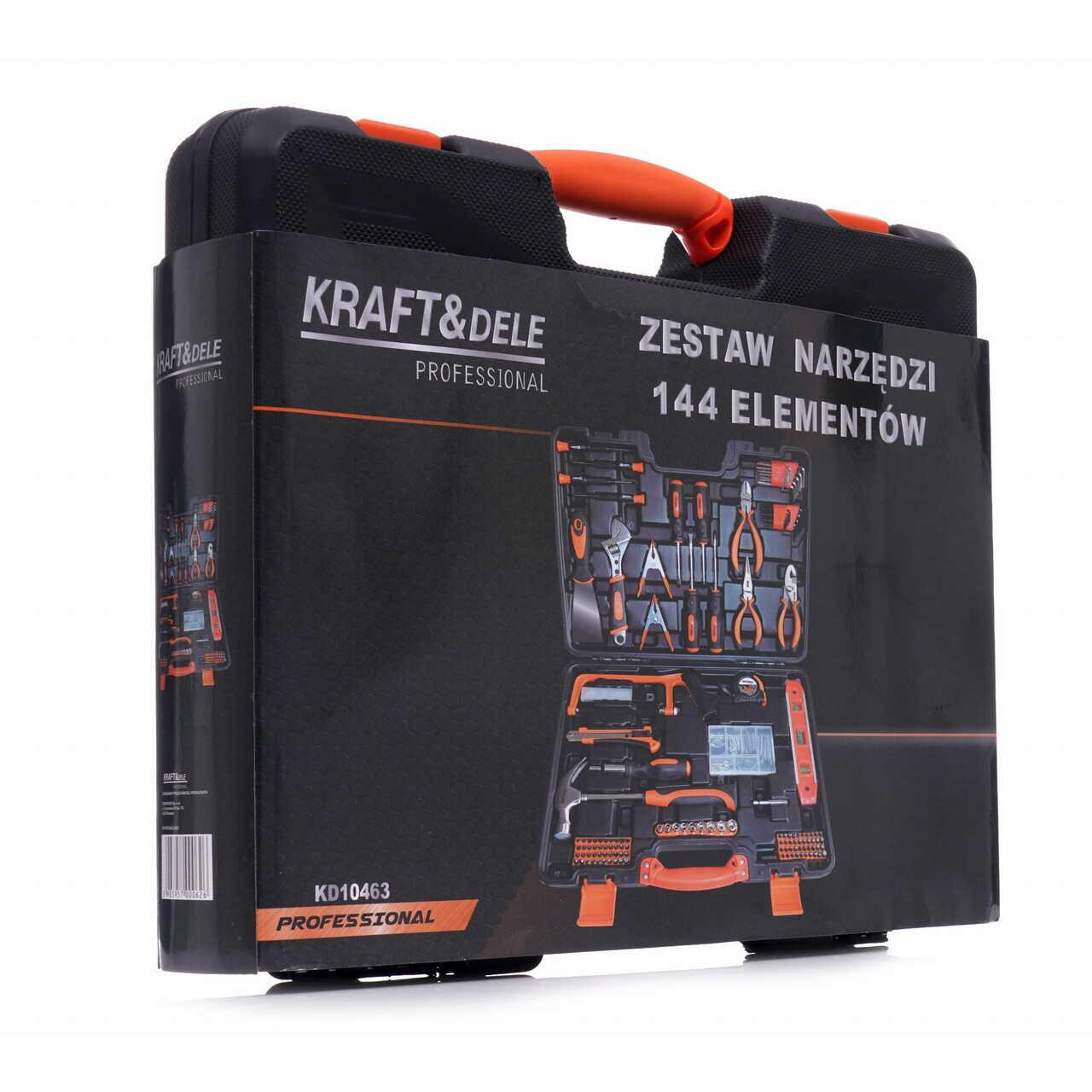 Un set de scule excepțional de cuprinzător de la Kraft & Dele, referința KD10463. Sculele sunt caracterizate de o manoperă solidă, materiale durabile și o cutie de transport practică care conține fiecare sculă. Întregul set este format din 144 de piese diferite, asigurând alegerea potrivită a sculelor pentru nevoile dumneavoastră. Sculele sunt fabricate din oțel crom-vanadiu (CrV) călit, destinat sculelor de atelier. Cromul garantează rezistența oțelului la coroziune, oxidare și abraziune și o rezistență ridicată la temperaturi ridicate. Cutia de transport, fabricată din plastic durabil, permite ordinea și transportul ușor al sculelor. Fiecare sculă are propriul spațiu desemnat, facilitând găsirea dimensiunii potrivite a cheii.