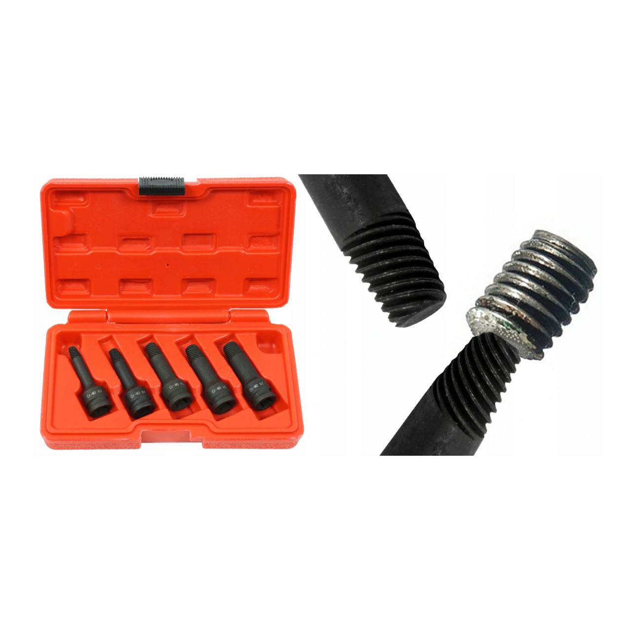 Extractoarele de șuruburi sparte sunt un set de cinci extractoare de dimensiuni diferite pentru îndepărtarea șuruburilor și șuruburilor rupte sau deteriorate în alt mod.