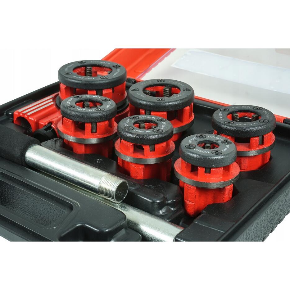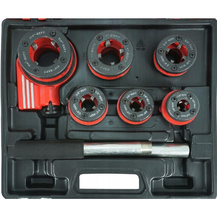 Toate capetele de filetare au aceeași montare, iar modalitatea simplă de montare a capului într-un buton cu clichet eficient permite comutarea rapidă a direcției de filetare.