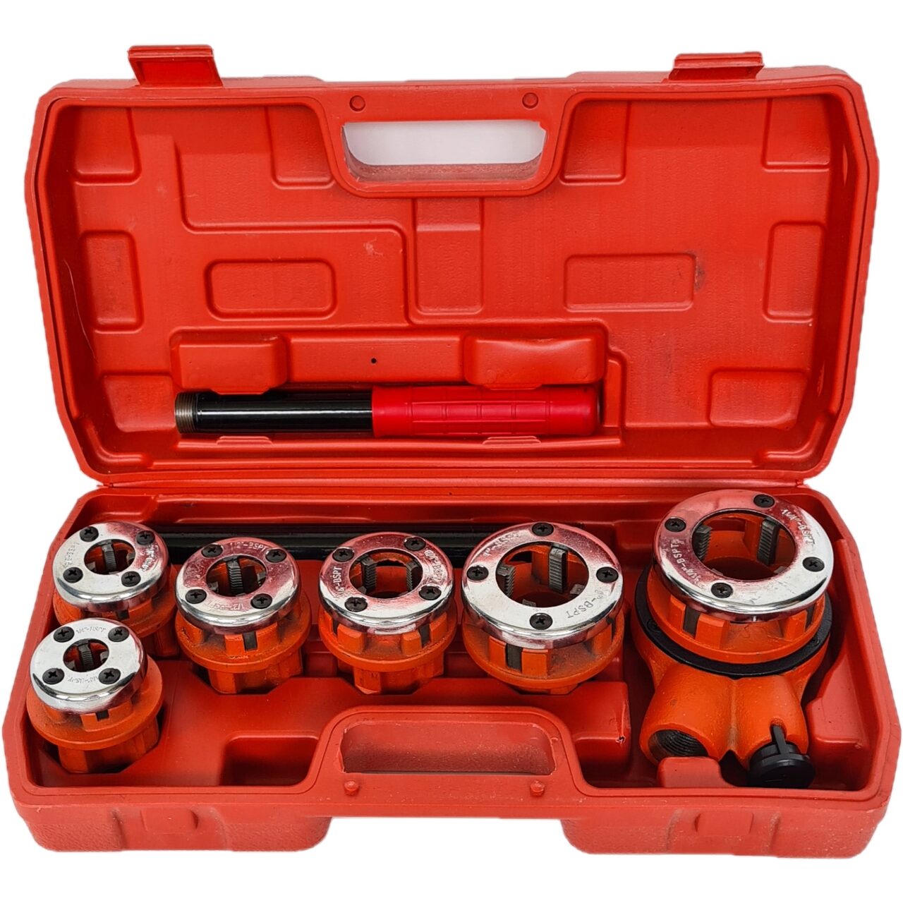 Trusa filiera pentru tevi de la Onex cu marimeile 1/4", 3/8", 1/2", 3/4", 1", 1 1/4" ,perfecte pentru efectuarea conexiunii de filetare in operatiunea de asamblare sau instalare.