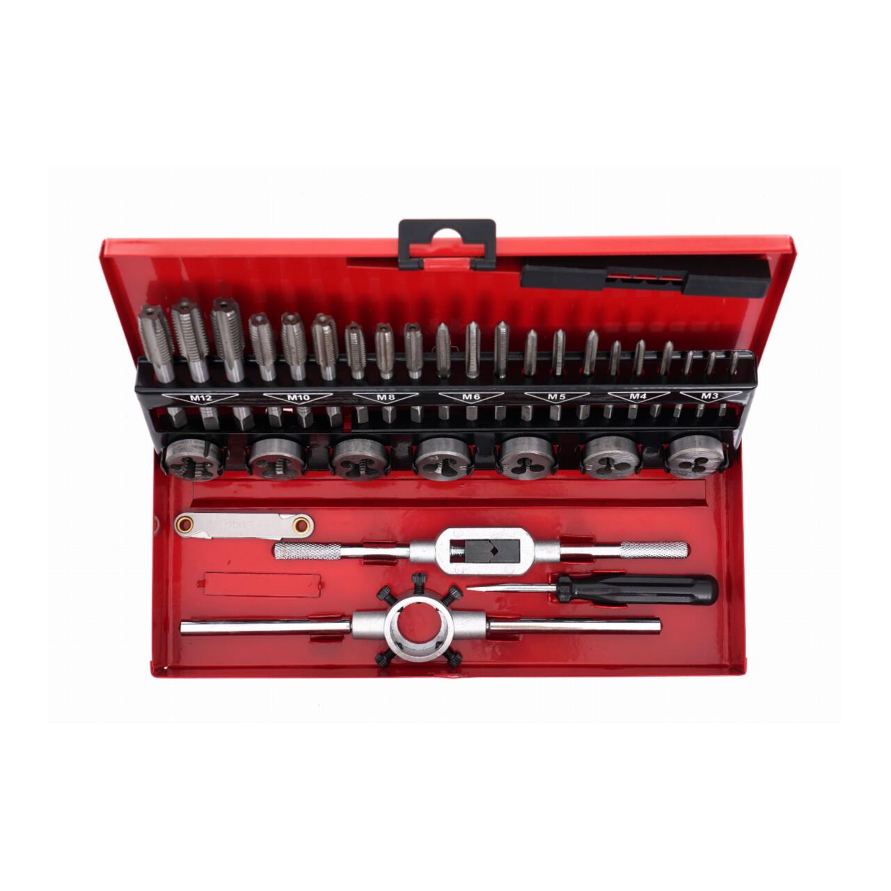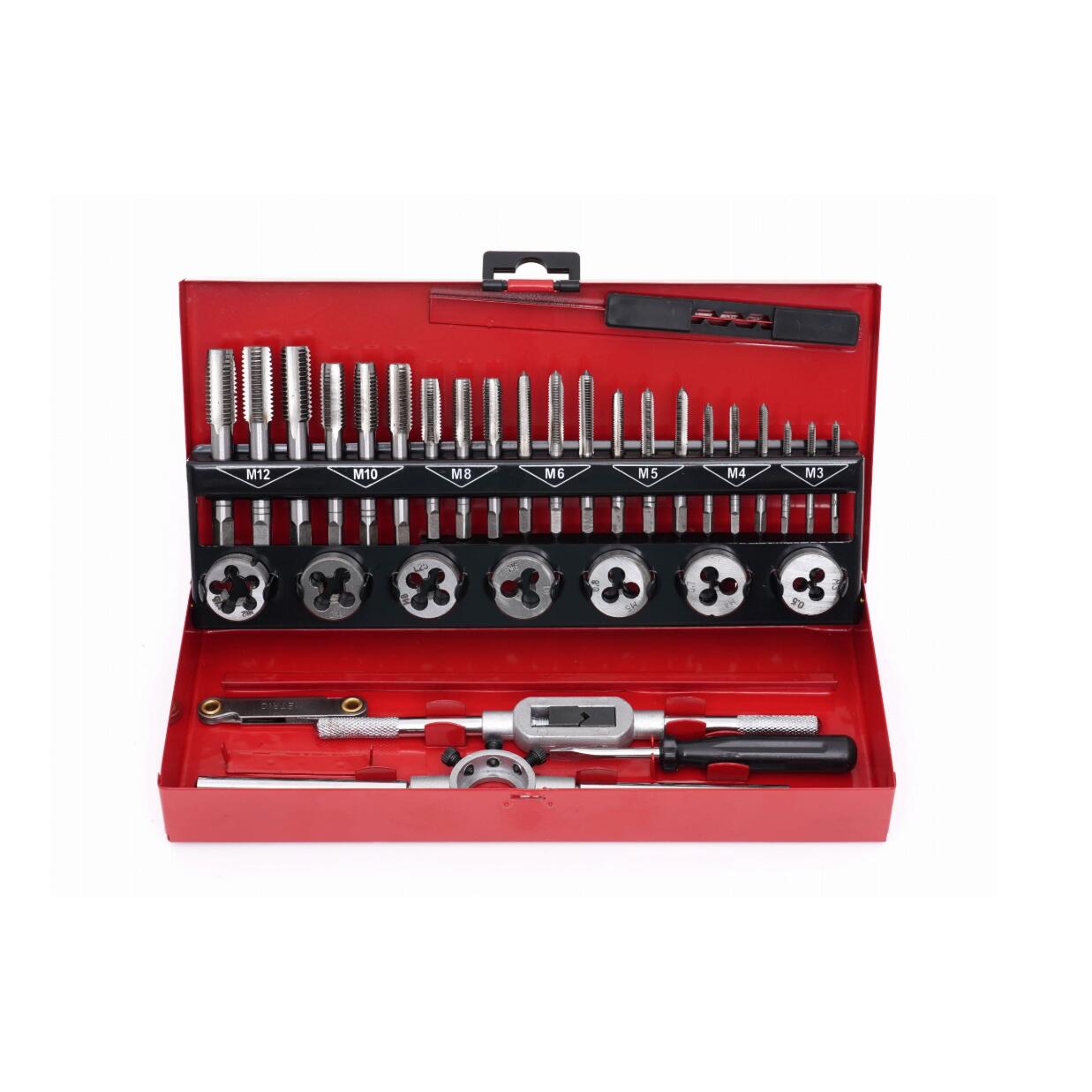 Trusa este un set complet de 32 de piese pentru executarea filetarii interioare si exterioare in mod precis si eficient.
