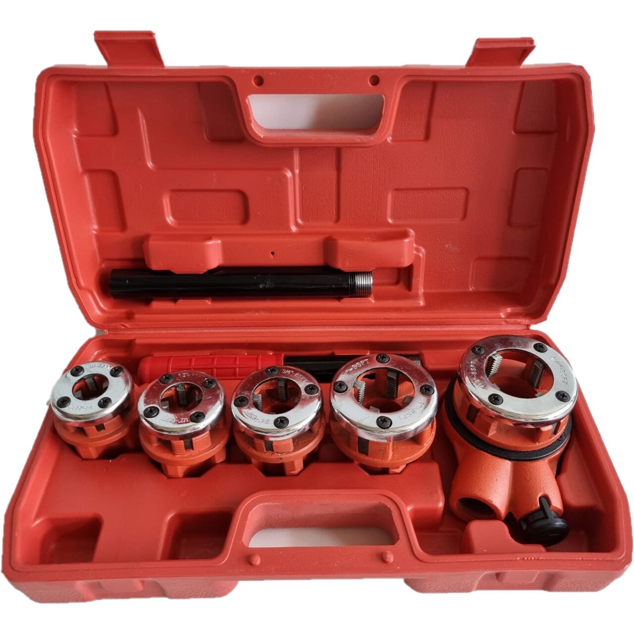 Trusa filiera pentru tevi de la Onex cu marimeile 3/8", 1/2", 3/4", 1", 1 1/4" ,perfecte pentru efectuarea conexiunii de filetare in operatiunea de asamblare sau instalare.