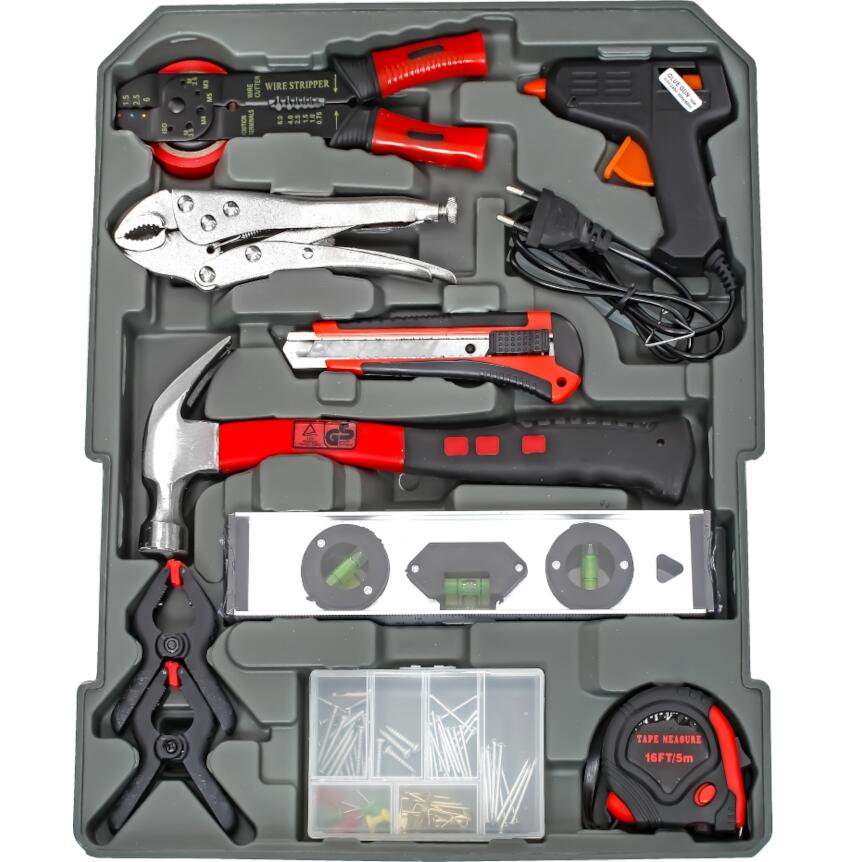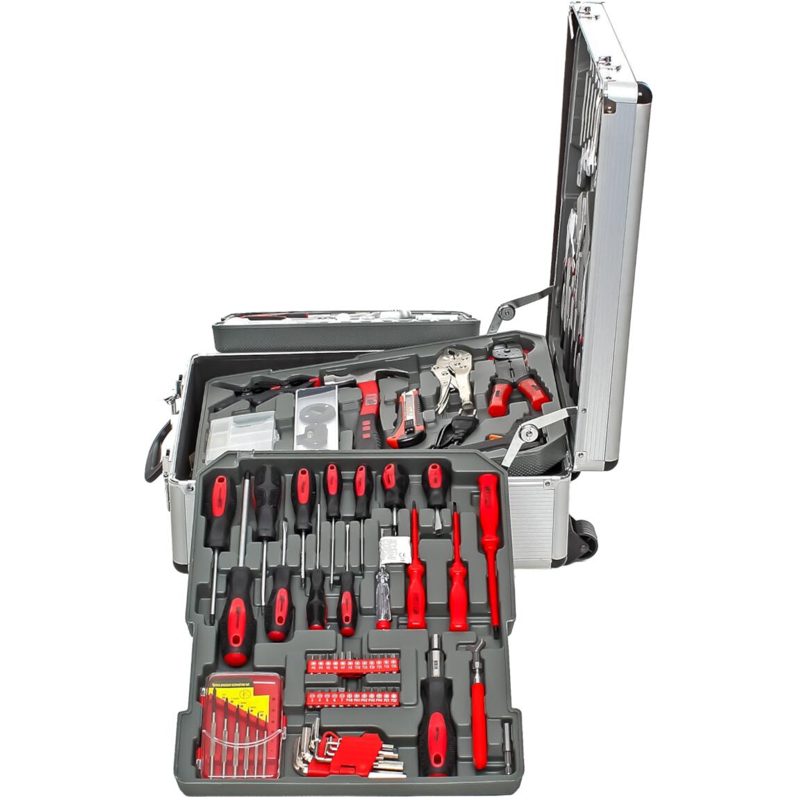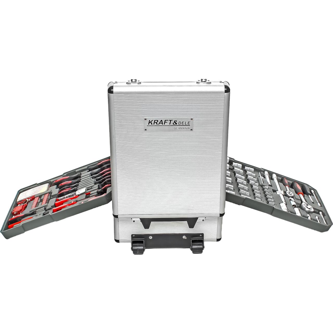Setul include o gamă largă de scule manuale esențiale pentru atelierele auto, atelierele de reparații și companiile producătoare. Casetele detașabile permit organizarea convenabilă, accesul rapid la scule și transportul facil al articolelor selectate. Un set complet de chei, tubulare, clești, șurubelnițe și accesorii permite finalizarea majorității lucrărilor fără a fi nevoie de scule suplimentare.