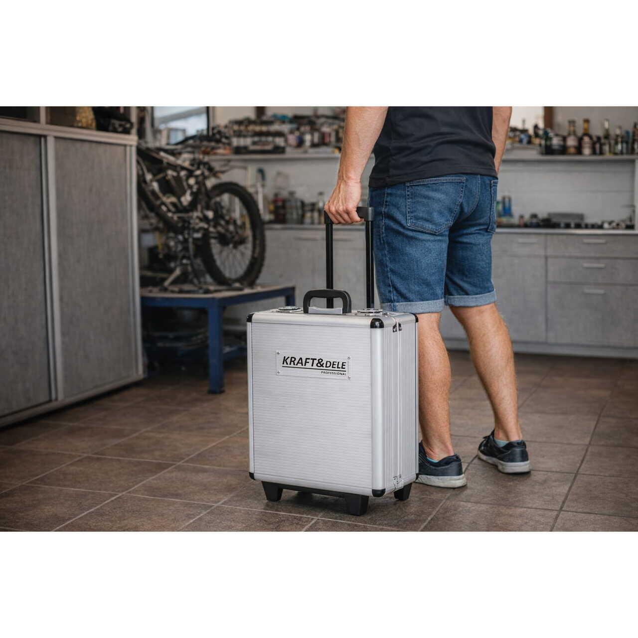 Un set de instrumente profesional conceput pentru utilizatorii care refuză să facă compromisuri în munca lor zilnică. Acest set este conceput pentru utilizare intensivă, unde viteza de lucru, siguranța și confortul maxim sunt esențiale. Toate cele 188 de piese sunt aranjate cu grijă într-o cutie robustă din aluminiu, asigurând că fiecare unealtă este întotdeauna la îndemână.