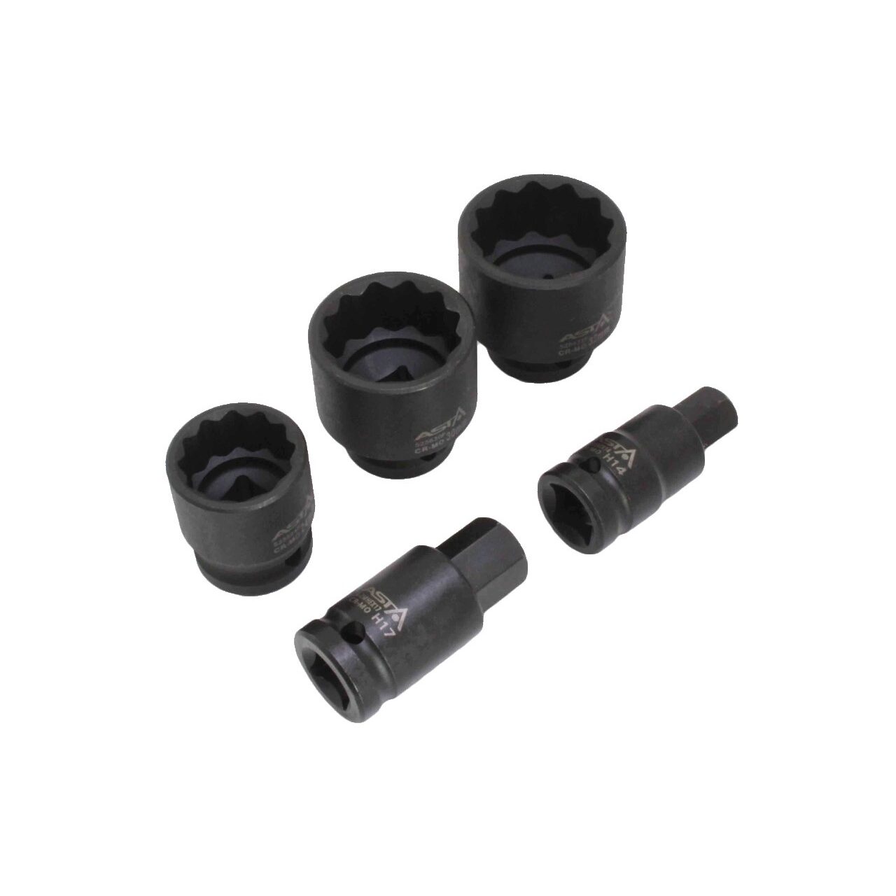 Trusa tubulare de impact, 12 colturi, 1/2" 14-32 mm, 5 piese, Asta