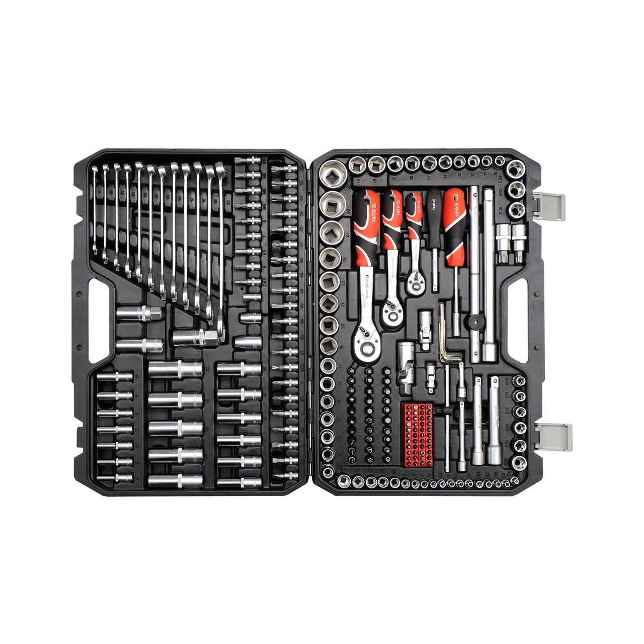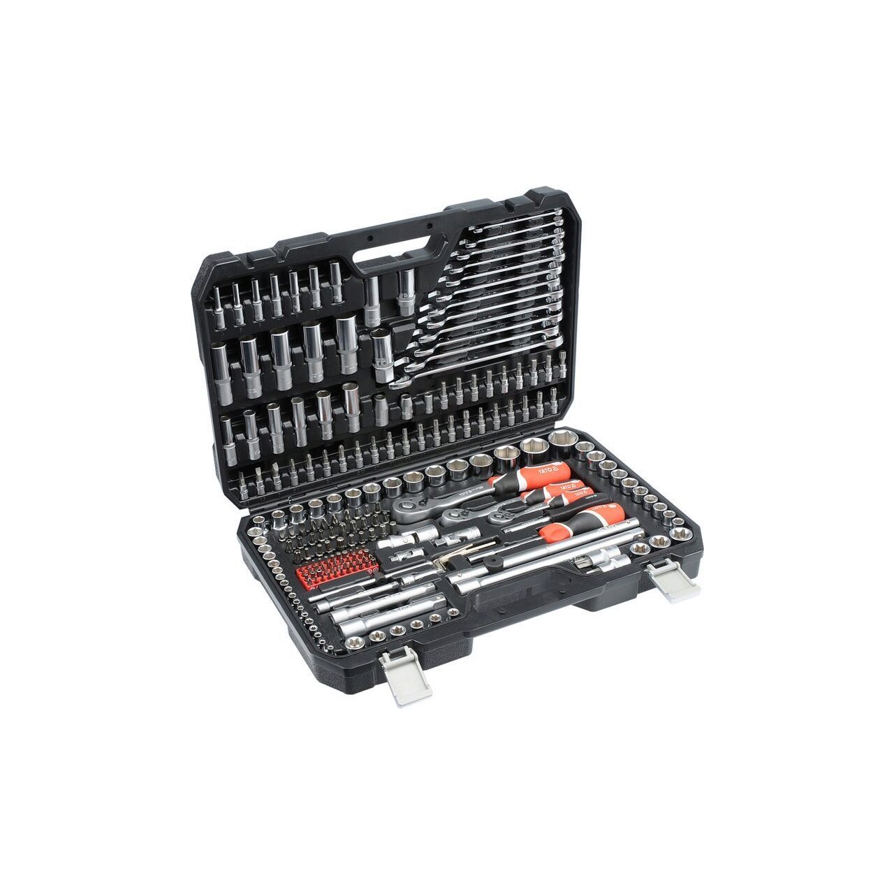 Trusa tubulare calitate marca YATO. Un set de instrumente profesionale, care a fost dezvoltat pentru a satisface nevoile de servicii specializate de automobile si mecanica. Cheile sunt realizate din instrument durabil crom vanadiu otel CrV 50BV30. Set tubulare recomandat in special pentru servicii auto profesionale si mecanice Trusa de scule profesionala Yato XXL 216 piese YT-3884