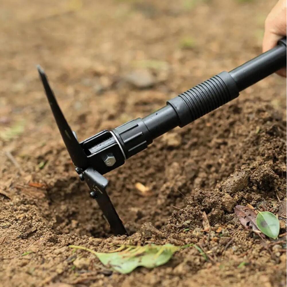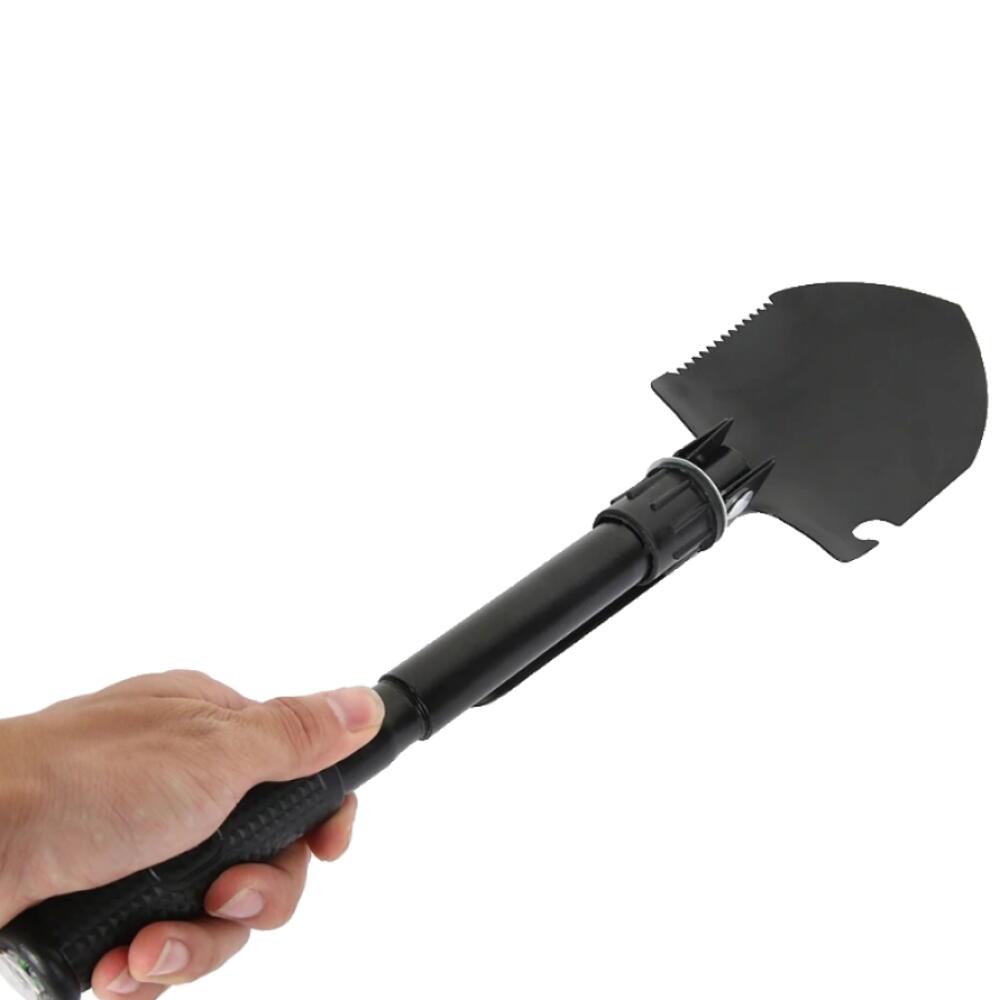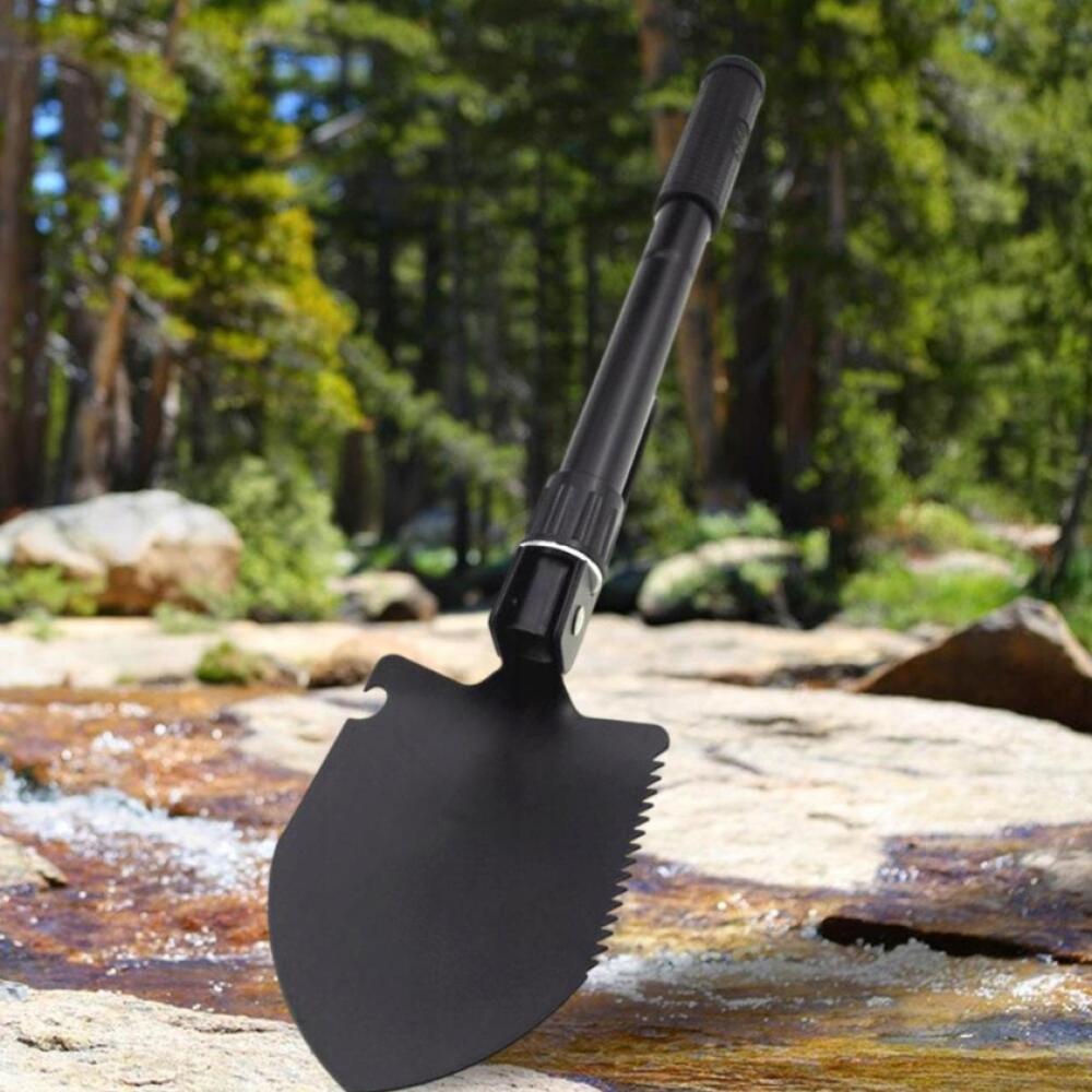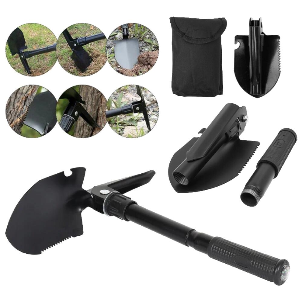 Unealta 4 în 1 este un dispozitiv multifuncțional care este perfect pentru camping, excursii de mai multe zile cu prietenii și de asemenea, acasă. Multe funcții într-un singur instrument: spatulă, târnăcop, fierăstrău, deschizător. Datorită elementelor pliabile, este compact și ușor de transportat. Mânerul din cauciuc face ca lopata să se potrivească bine și în siguranță în mână.