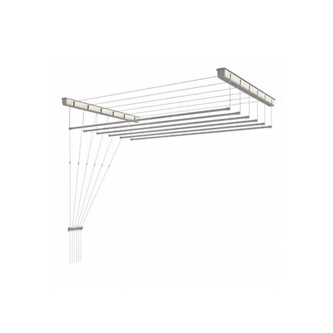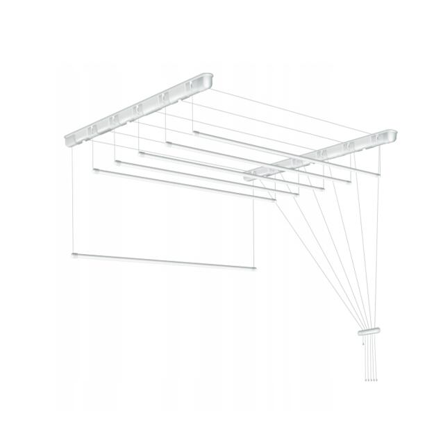 Uscătorul de tavan are țevi cu diametrul de 13 mm. Destinat utilizării în interior și exterior, rezistent la condițiile meteorologice. Datorită designului universal și multor dimensiuni disponibile, se va potrivi în orice cameră. De la o baie mică la o terasă mare. Ușurința de instalare îl face potrivit pentru fiecare membru al gospodăriei. Datorită barelor, aveți acces ușor și rapid pentru a vă agăța rufele. Sarcina maxima pe o tija este de 2kg.