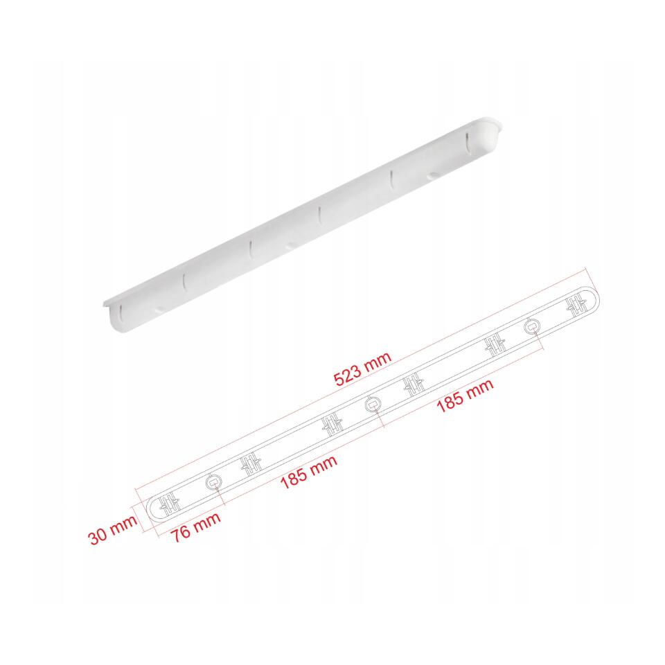 Banda de tavan are 3 orificii cu o distanta de 18,5 cm