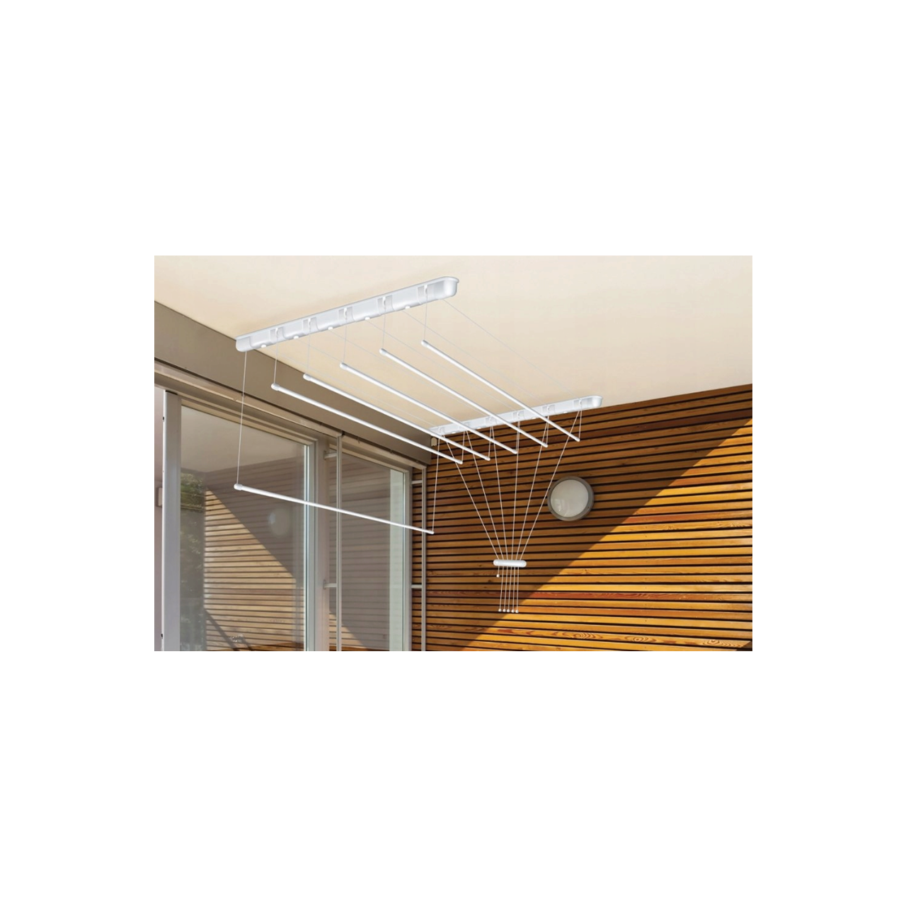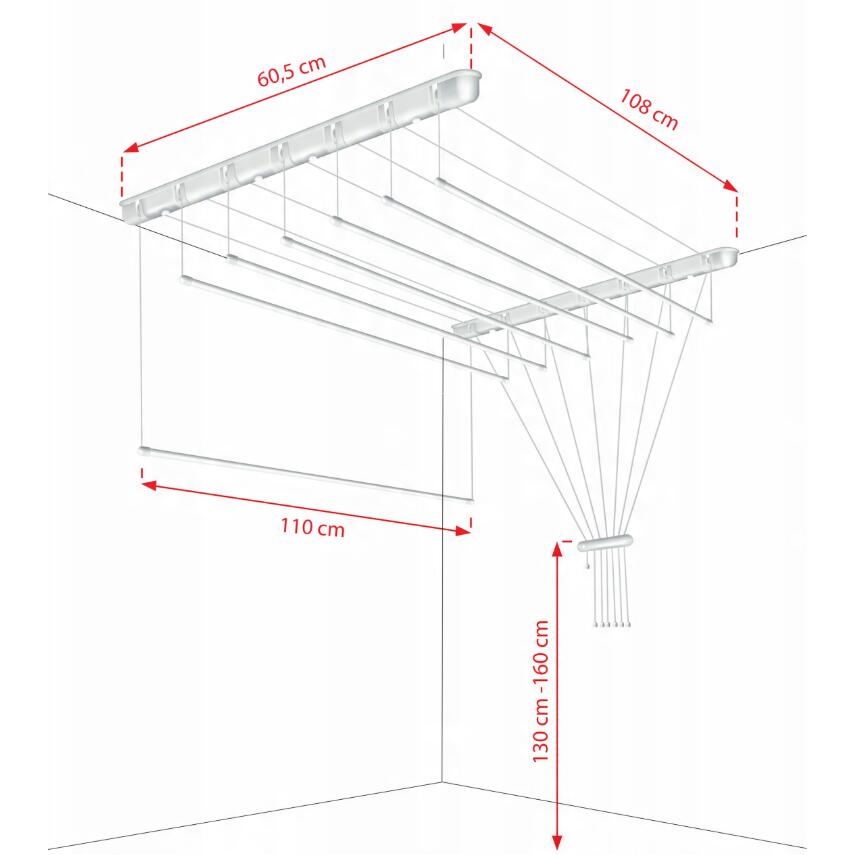 Un uscător este o soluție ideală pentru apartamentele mici . Datorită suspendării: pe un tavan, în baia de deasupra căzii, pe balcon sau terasă.