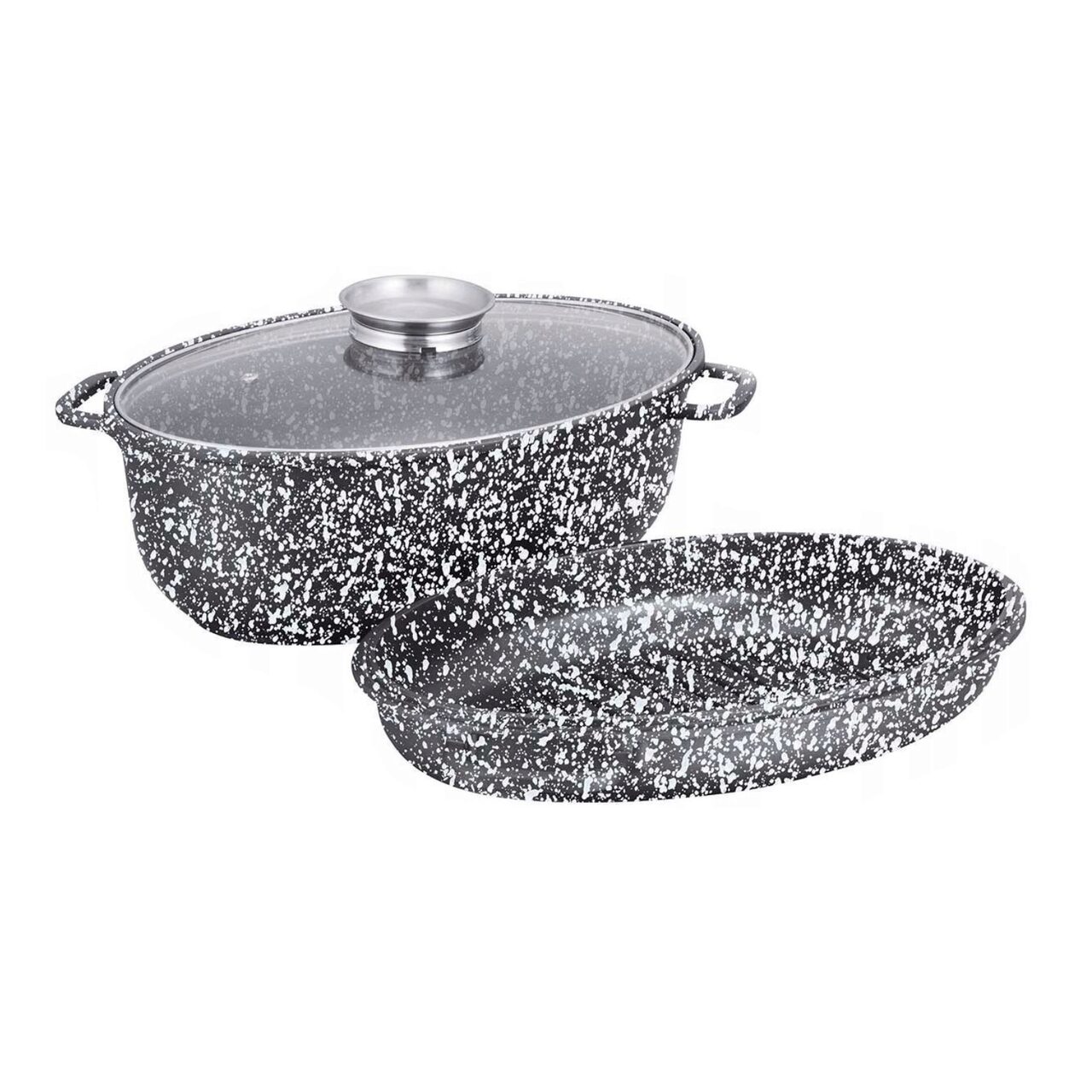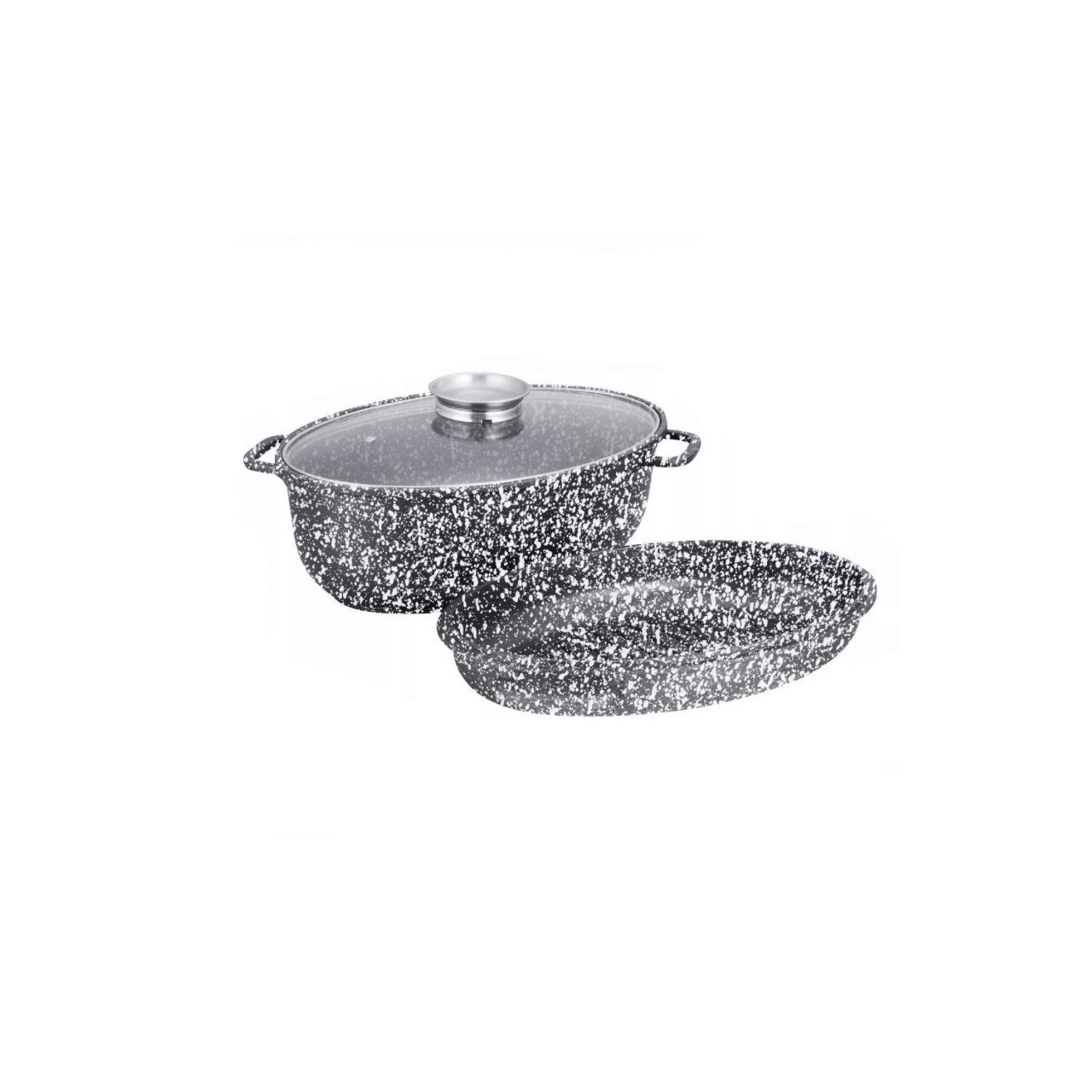 Vas pentru cuptor termorezistent Premium, strat antiaderent marmura, cu capac, 8l, 38x25x12,8 cm, Klausberg
