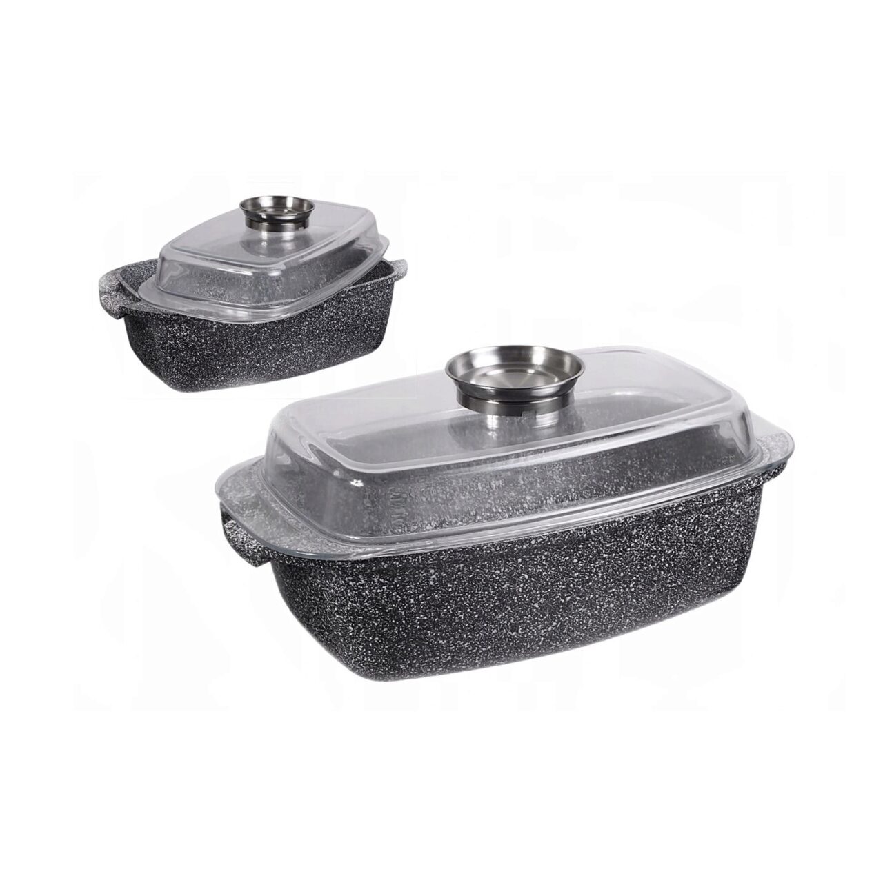 Un vas cu capac de marmură ceramică antiaderent. Vasele din aliaj de aluminiu au un fund feromagnetic inductiv. Sunt adaptate pentru a funcționa cu orice tip de bucătărie, inclusiv plite cu inducție. Vasul are un capac rezistent la căldură cu suport pentru arome, datorită căruia putem completa lichidele din vasul preparat fără a scoate capacul, ceea ce ne va permite să nu pierdem vitaminele necesare în alimente și va oferi mancarii un gust grozav.