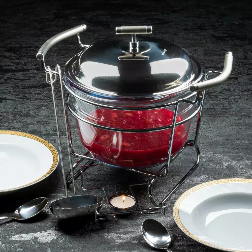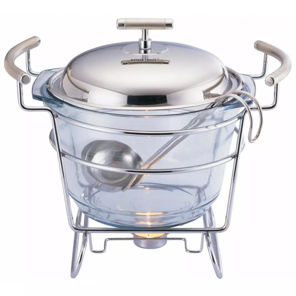 Vas termorezistent, capac inox, cu incalzitor pentru mancare, chafing dish cu lumanare, 4L, Kinghoff