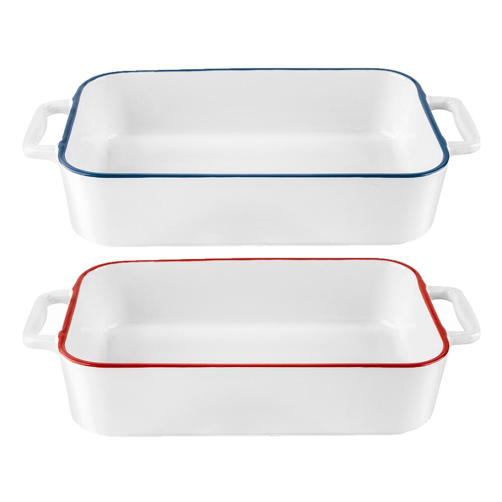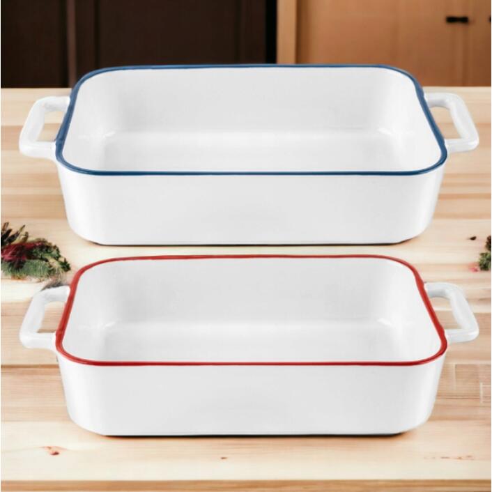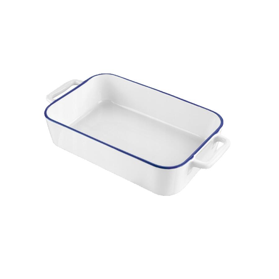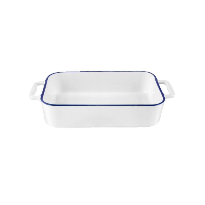 Vasul din ceramica este disponibil in varianta cu margine pe culoare albastru.