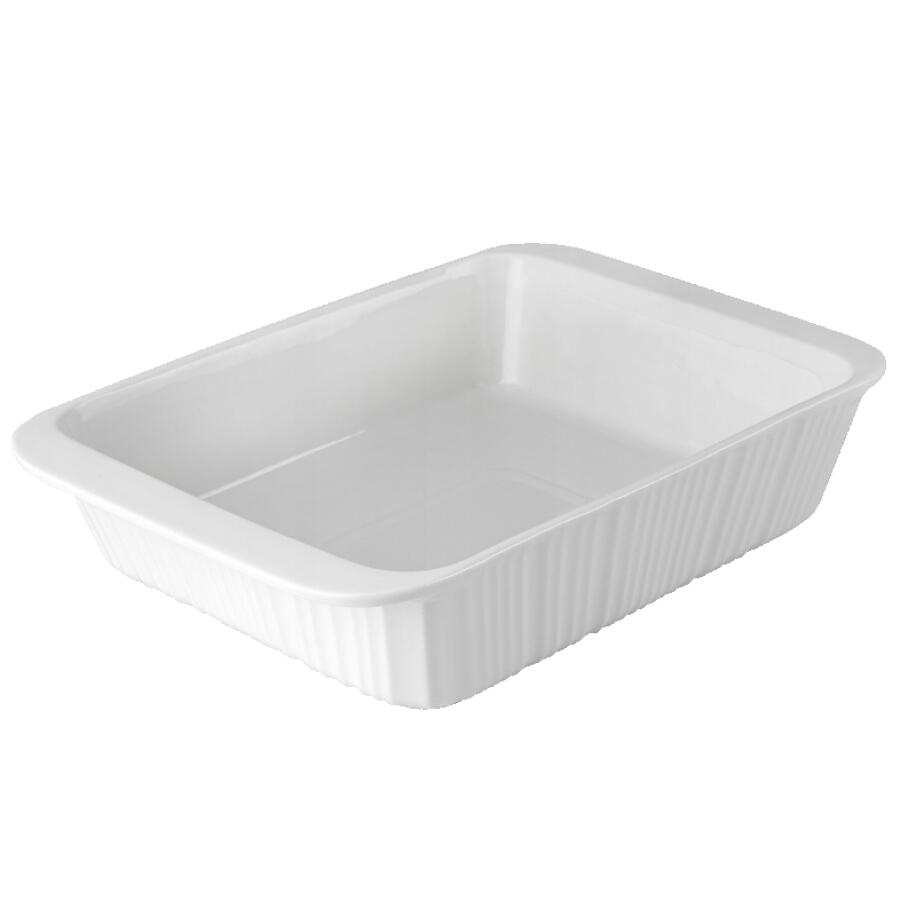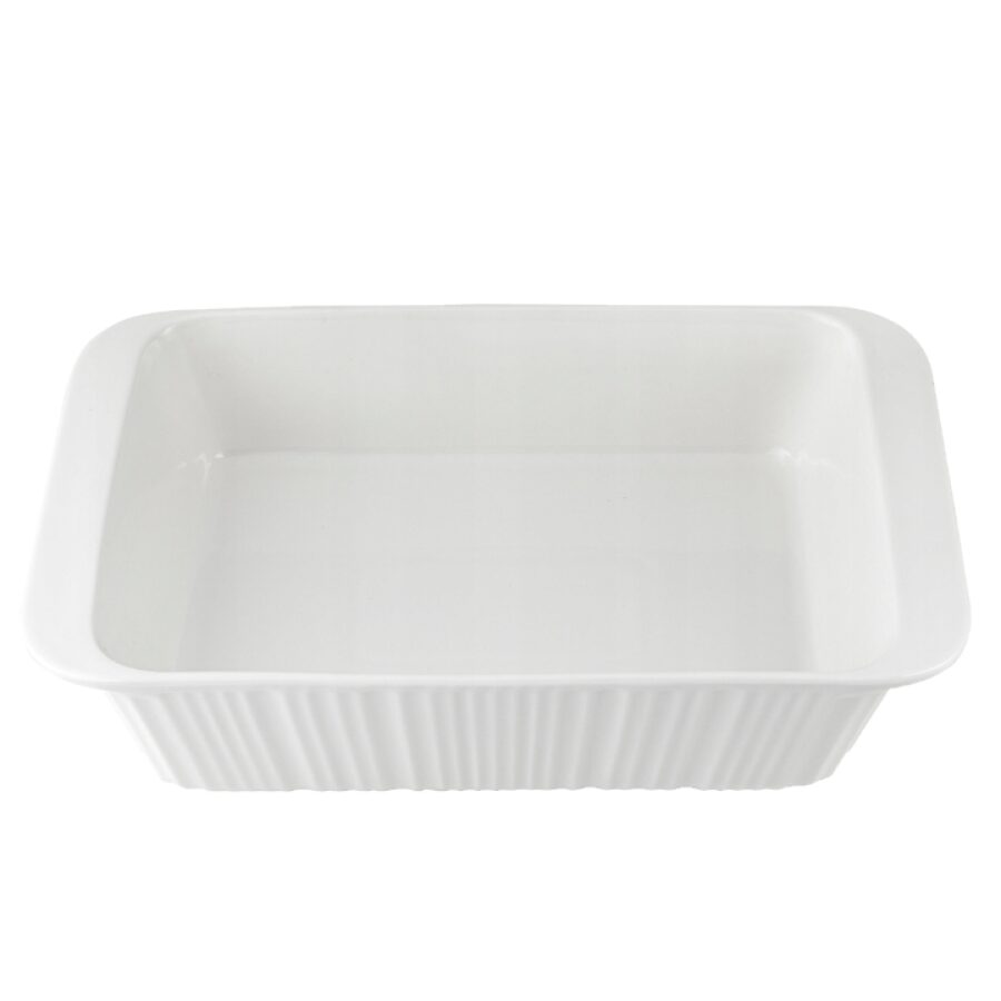 Forma dreptunghiulară a vasului cu un decor subtil, canelat pe partea exterioară, îi conferă un aspect elegant și stilat, care se va potrivi perfect atât în amenajările de bucătărie moderne, cât și în cele tradiționale.