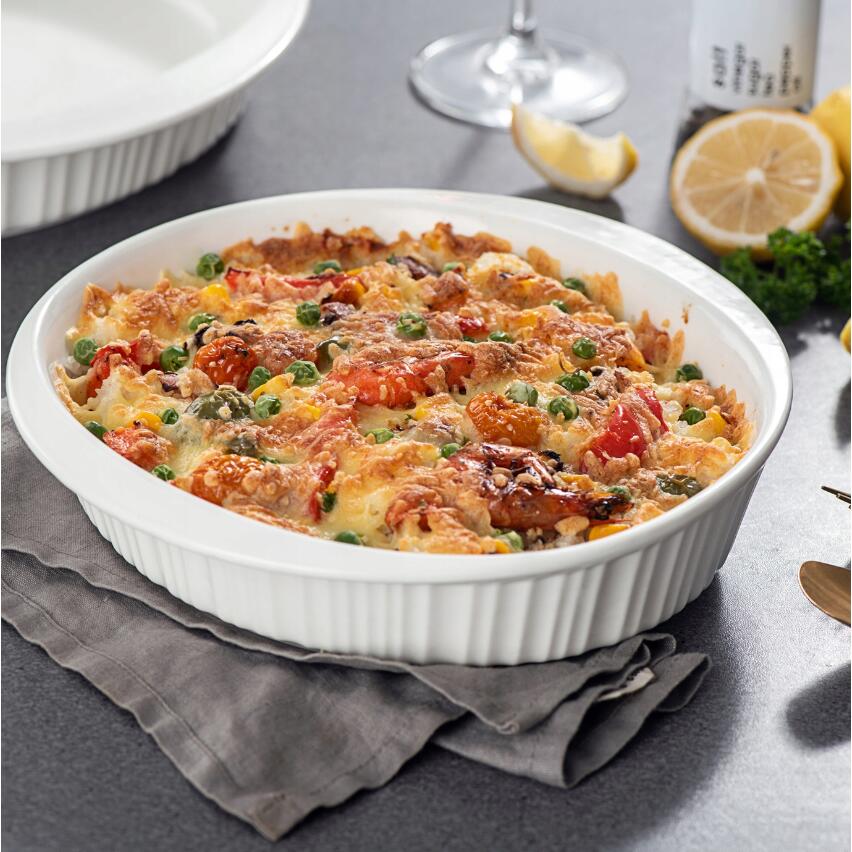 Forma ovală a vasului, cu un decor subtil, canelat pe partea exterioară, îi conferă un aspect elegant și stilat, care se va potrivi perfect atât în amenajările de bucătărie moderne, cât și în cele tradiționale.