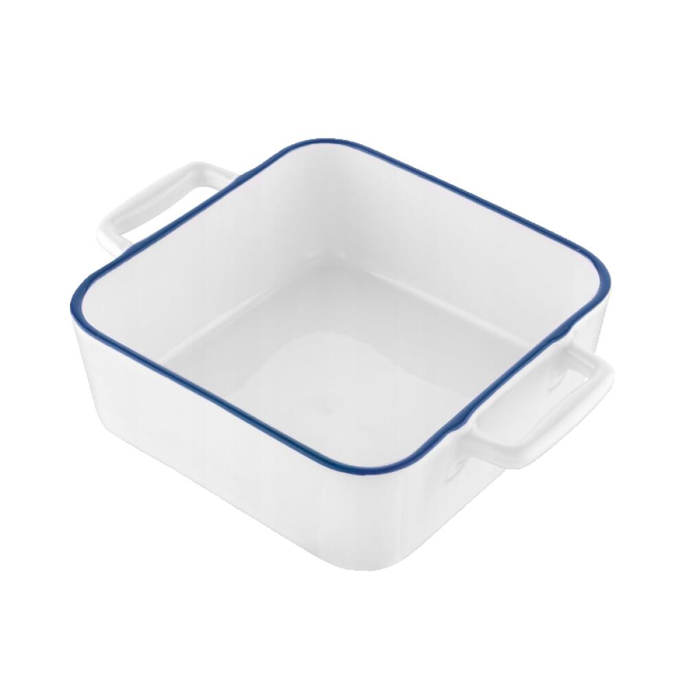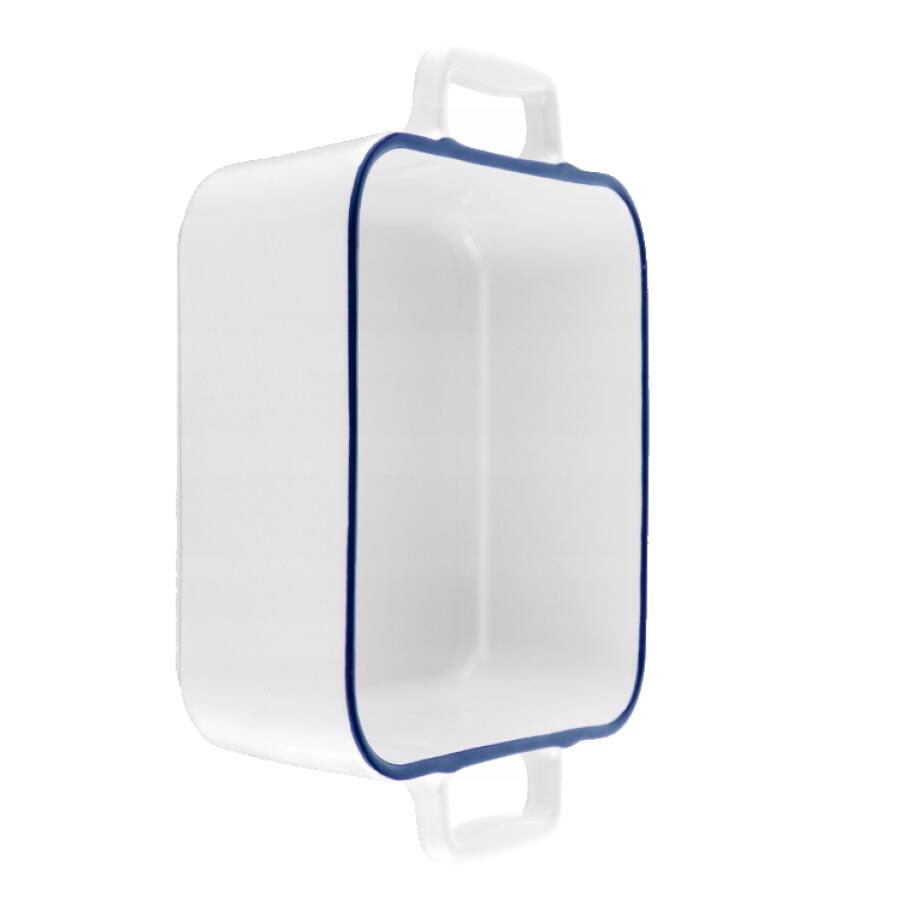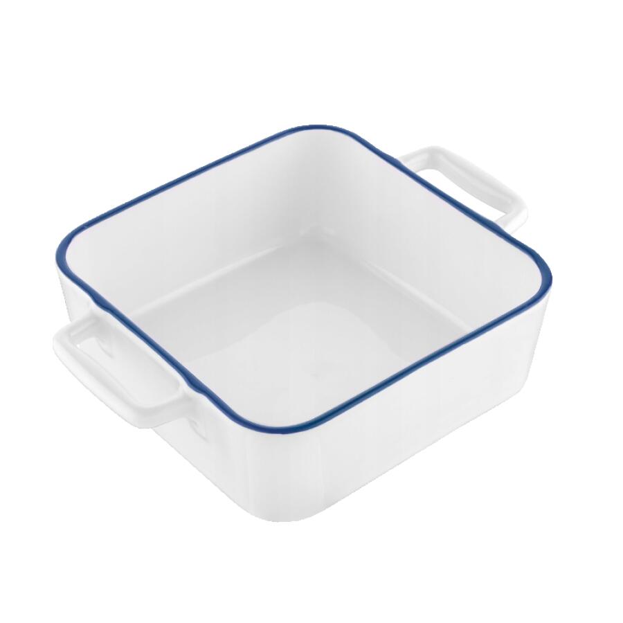 Vasul din ceramica este disponibil in varianta cu margine pe culoare albastru.