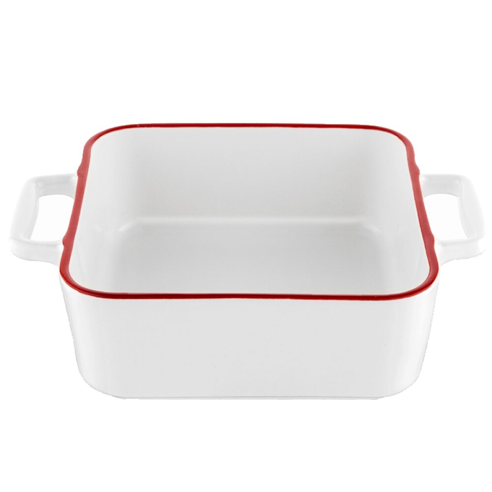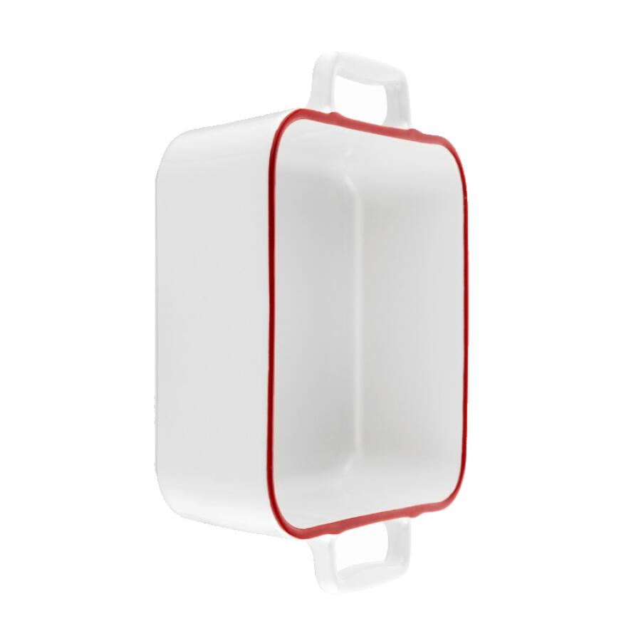 Vasul din ceramica este disponibil in varianta cu margine pe culoare rosu.