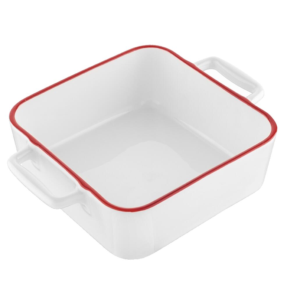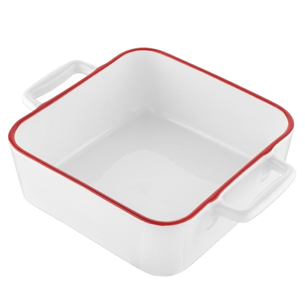 Vasul din ceramica este disponibil in varianta cu margine pe culoare rosu.
