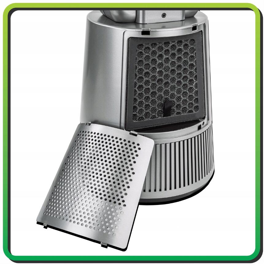 Ventilatorul este echipat cu un filtru de carbon care elimină în mod eficient compușii organici volatili (COV) nocivi , inclusiv formaldehida și alți poluanți din gazele de eșapament, fumul de țigară și vopselele.