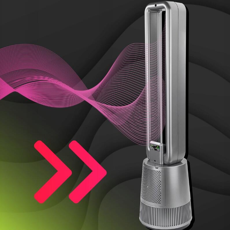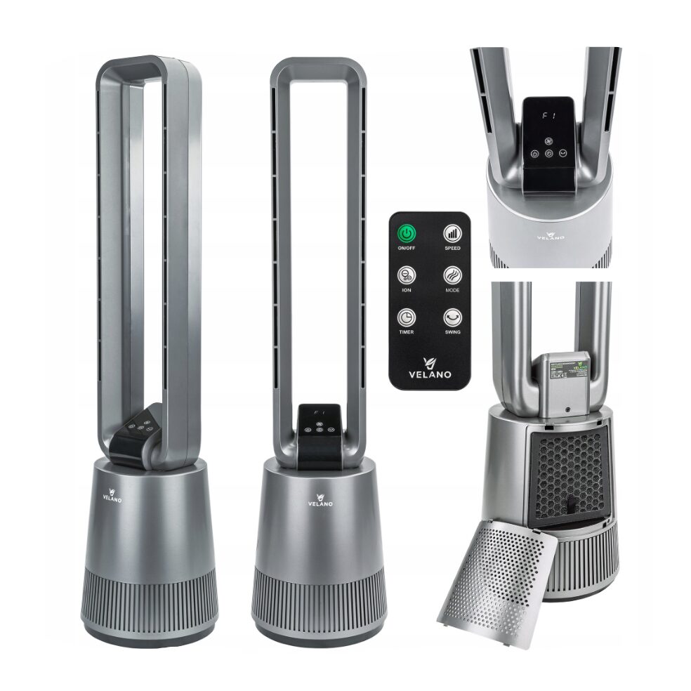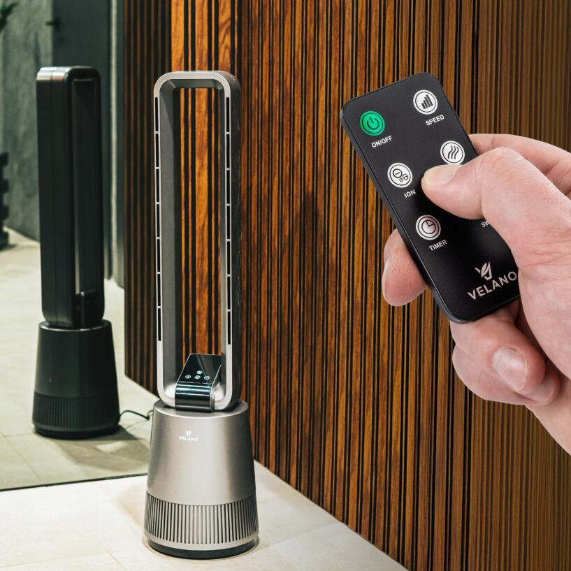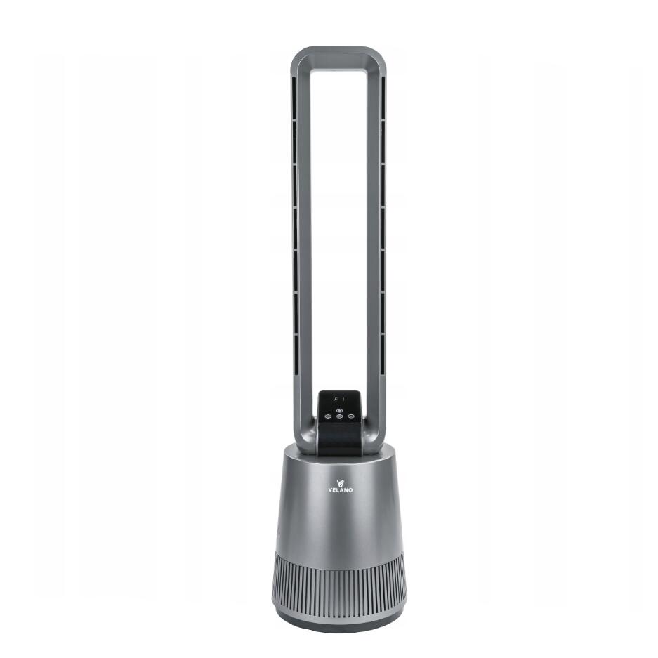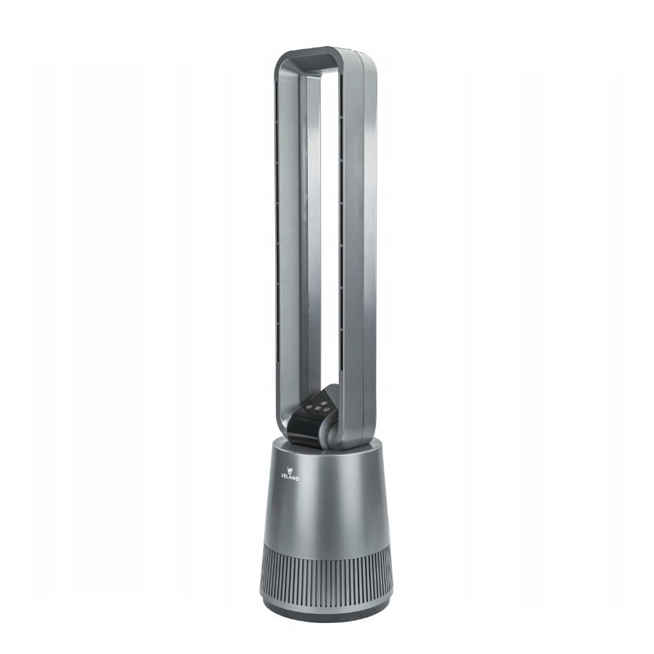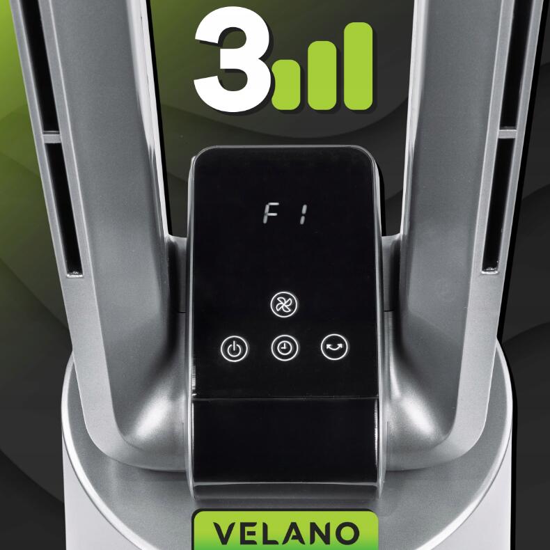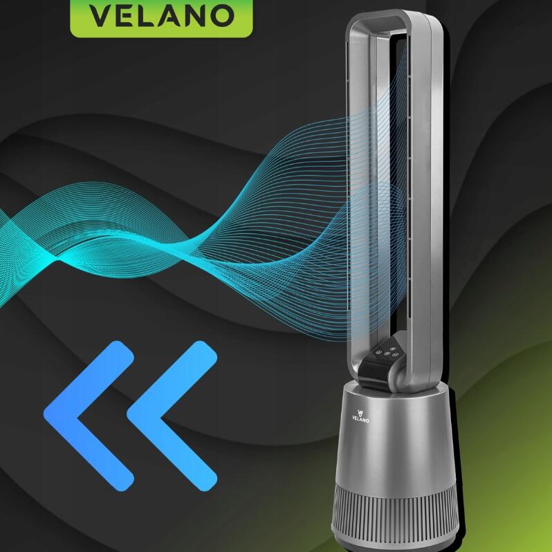 Ventilatorul Velano utilizează un sistem inovator fără lame care elimină riscul de rănire și asigură un flux uniform al aerului .