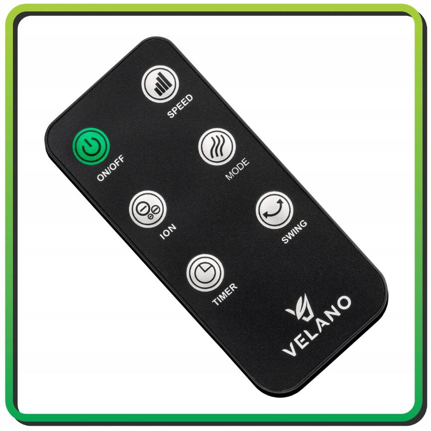 Ventilatorul este echipat cu o telecomandă , datorită căreia puteți opera toate funcțiile fără a fi nevoie să vă apropiați de dispozitiv. Schimbați vitezele, modurile și oscilația cu un singur buton.