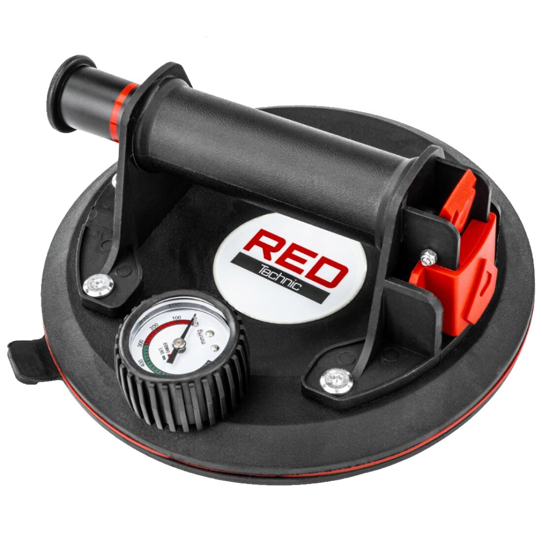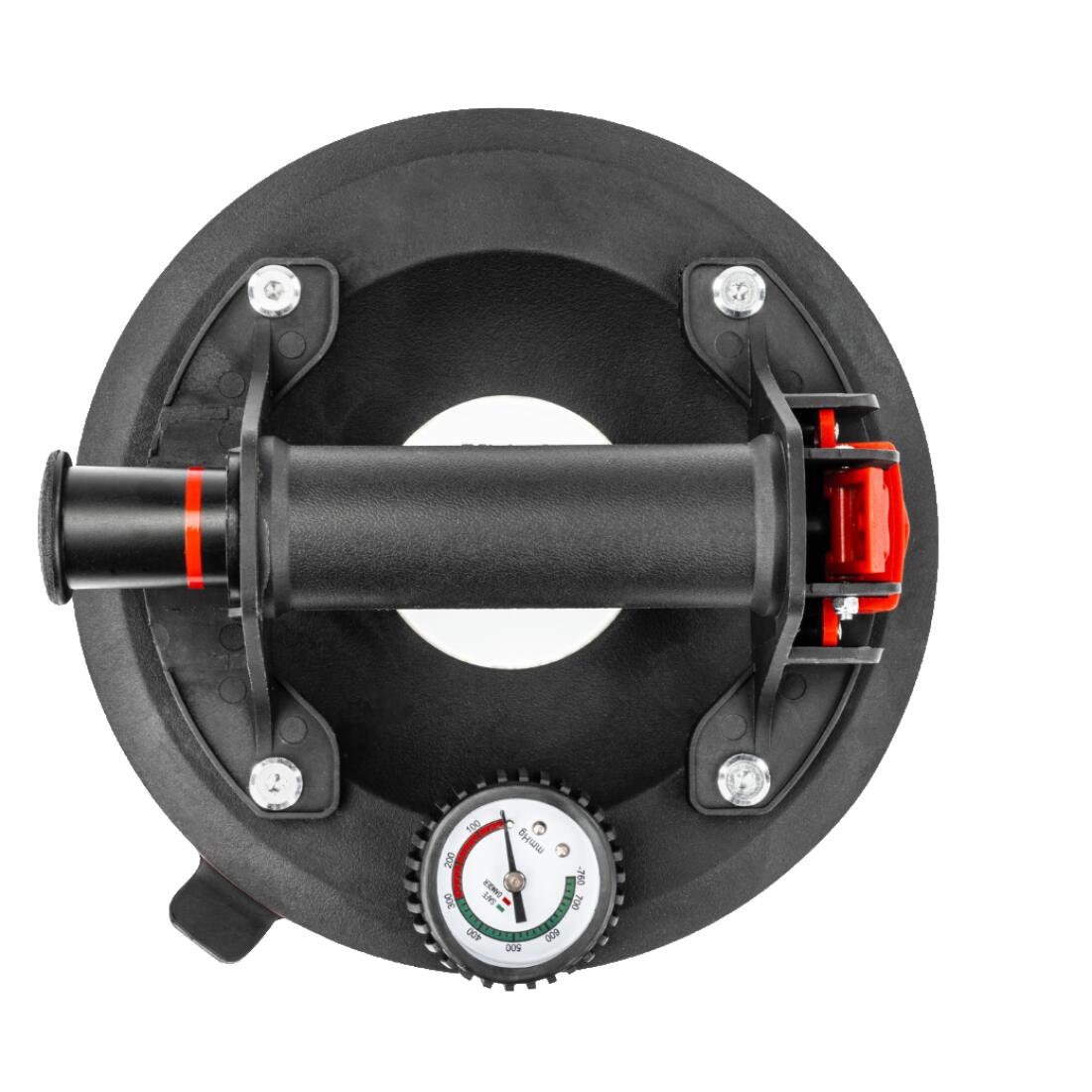 Suportul este echipat cu un manometru analogic care vă permite să citiți și să controlați presiunea dintre cauciucul ventuzei și elementul aflat în mișcare. Datorită scalei clare, poți fi sigur că vei ști în orice moment când mânerul începe să-și piardă aderența și necesită dezumflare.