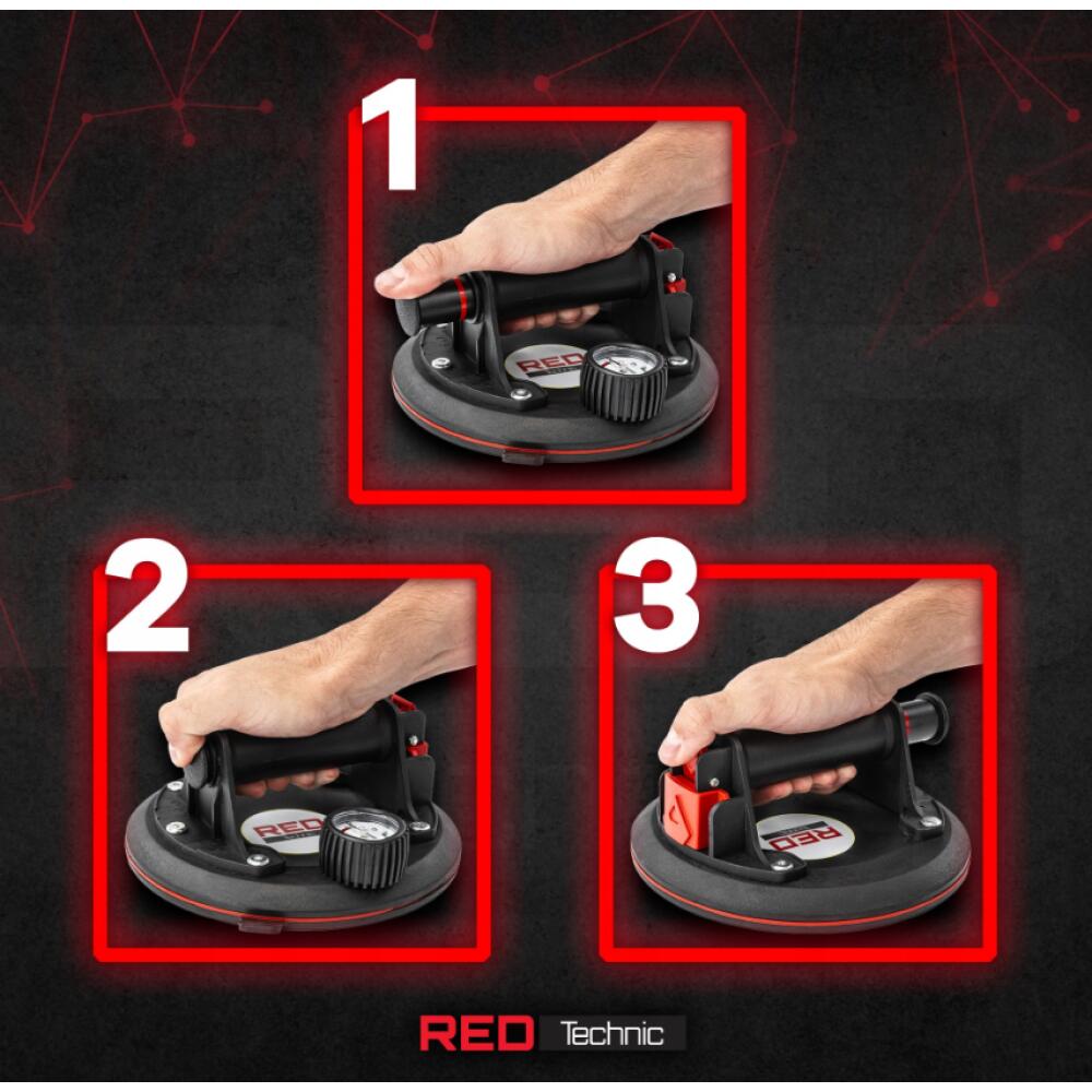 O ventuză cu vid cu o forță de aspirare impresionantă de până la 190 kg garantează o prindere fermă și stabilitate, permițându-vă să mutați în siguranță chiar și elementele mari și grele.